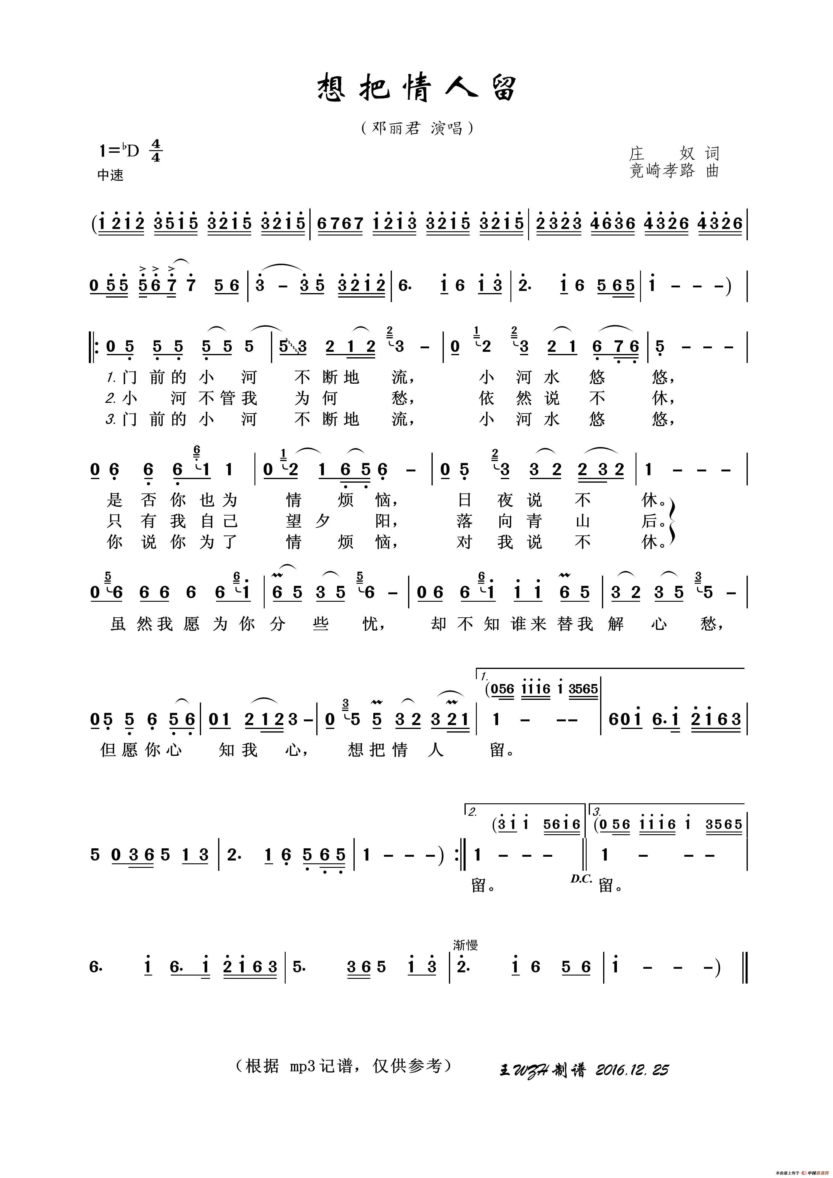 关于《想把情人留》曲谱的评论