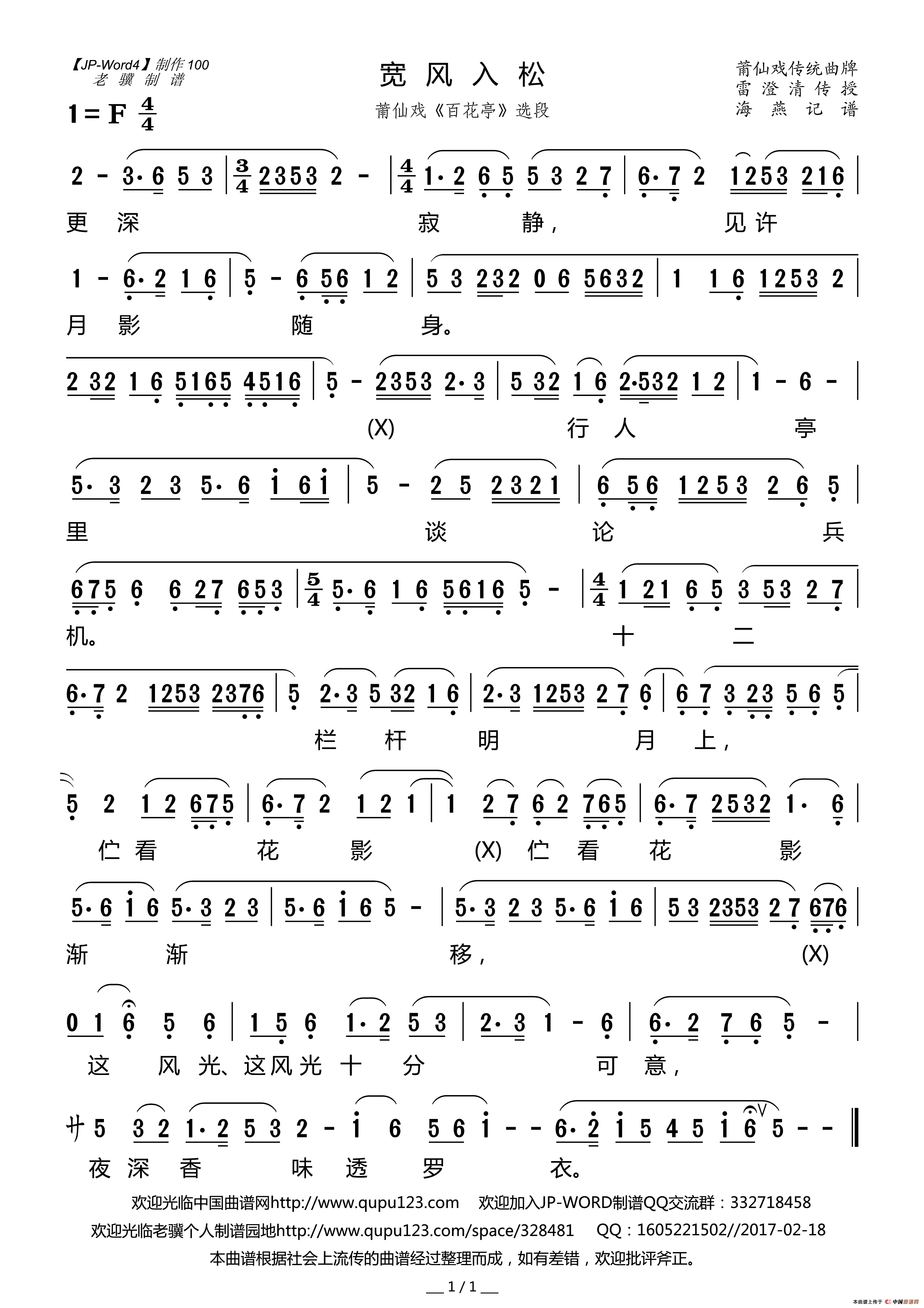 关于《[莆仙戏]宽风入松》曲谱的评论