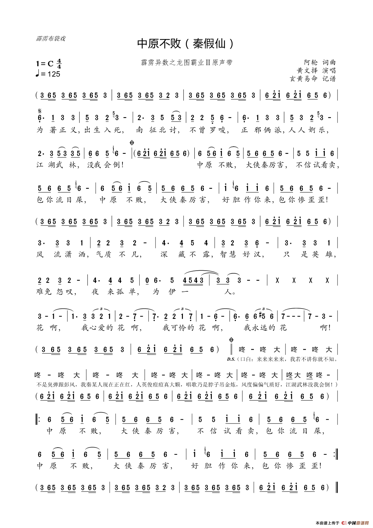 提示:在曲谱图片上单击右键,选择"图片另存为..."即可将曲谱保存到您的电脑中,打印时候可将图片插入到WORD中,调整合适大小打印即可。