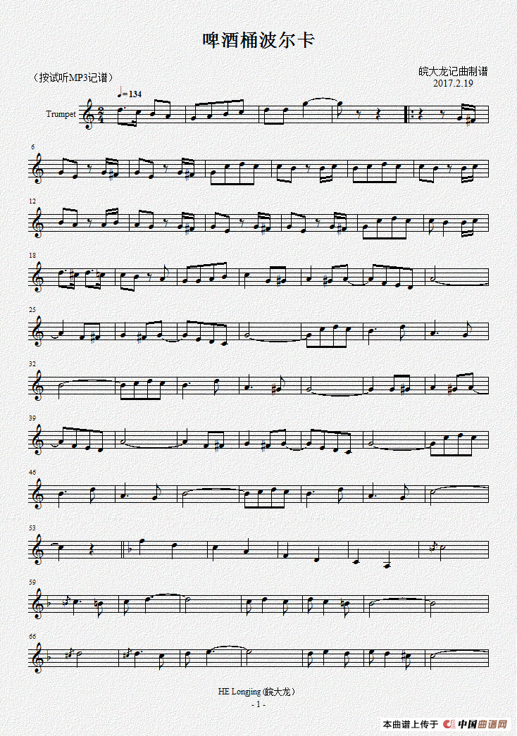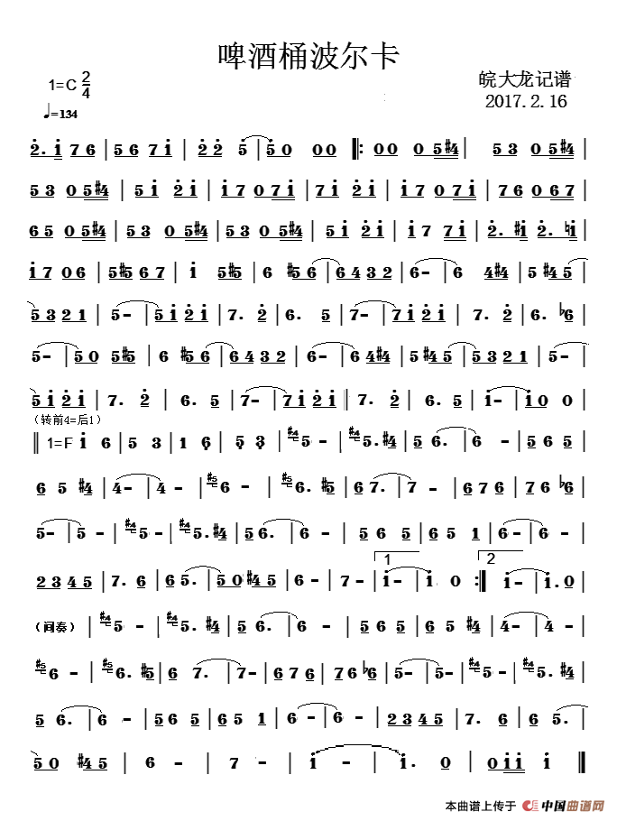 提示:在曲谱图片上单击右键,选择"图片另存为..."即可将曲谱保存到您的电脑中,打印时候可将图片插入到WORD中,调整合适大小打印即可。