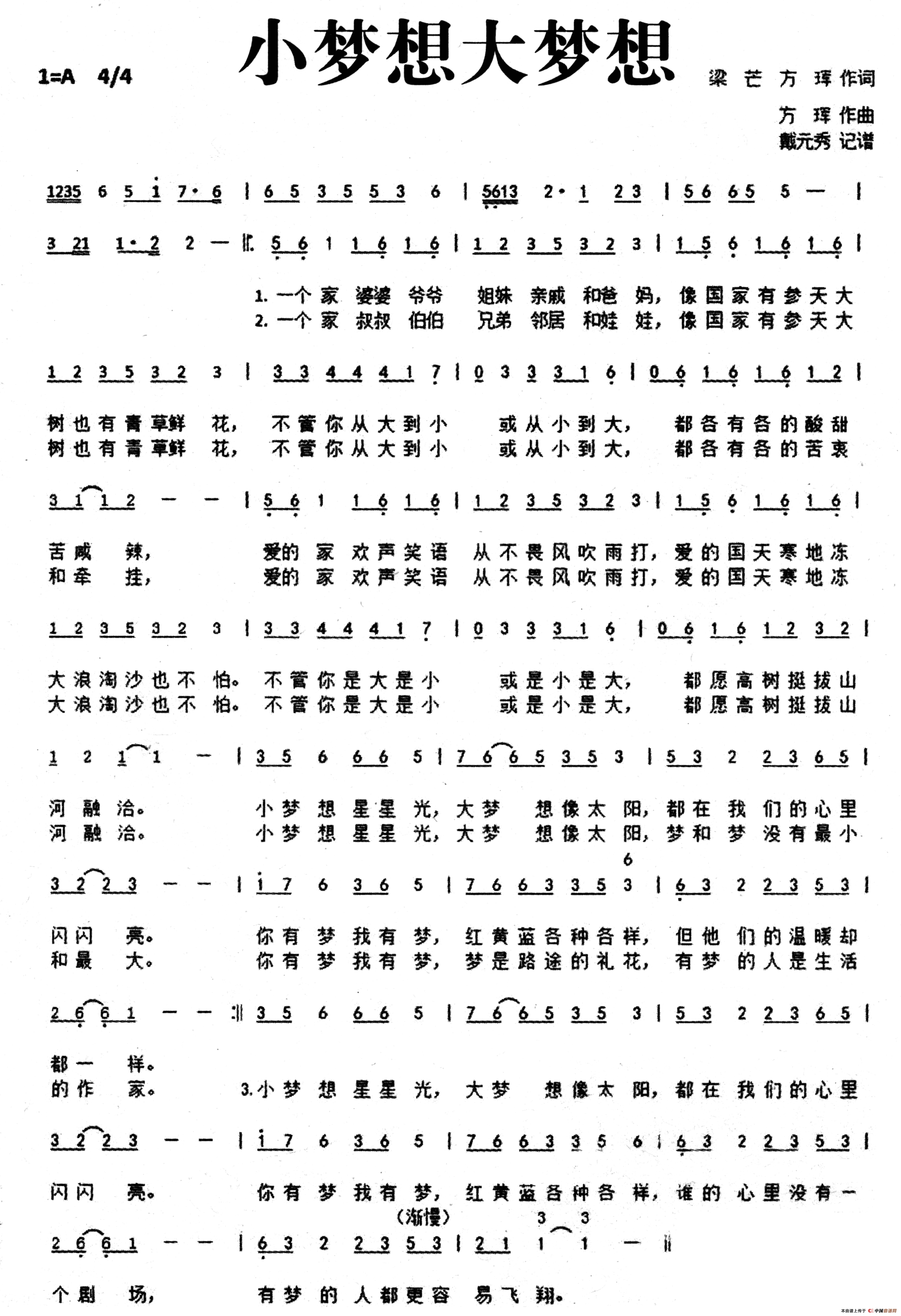 关于《小梦想大梦想》曲谱的评论