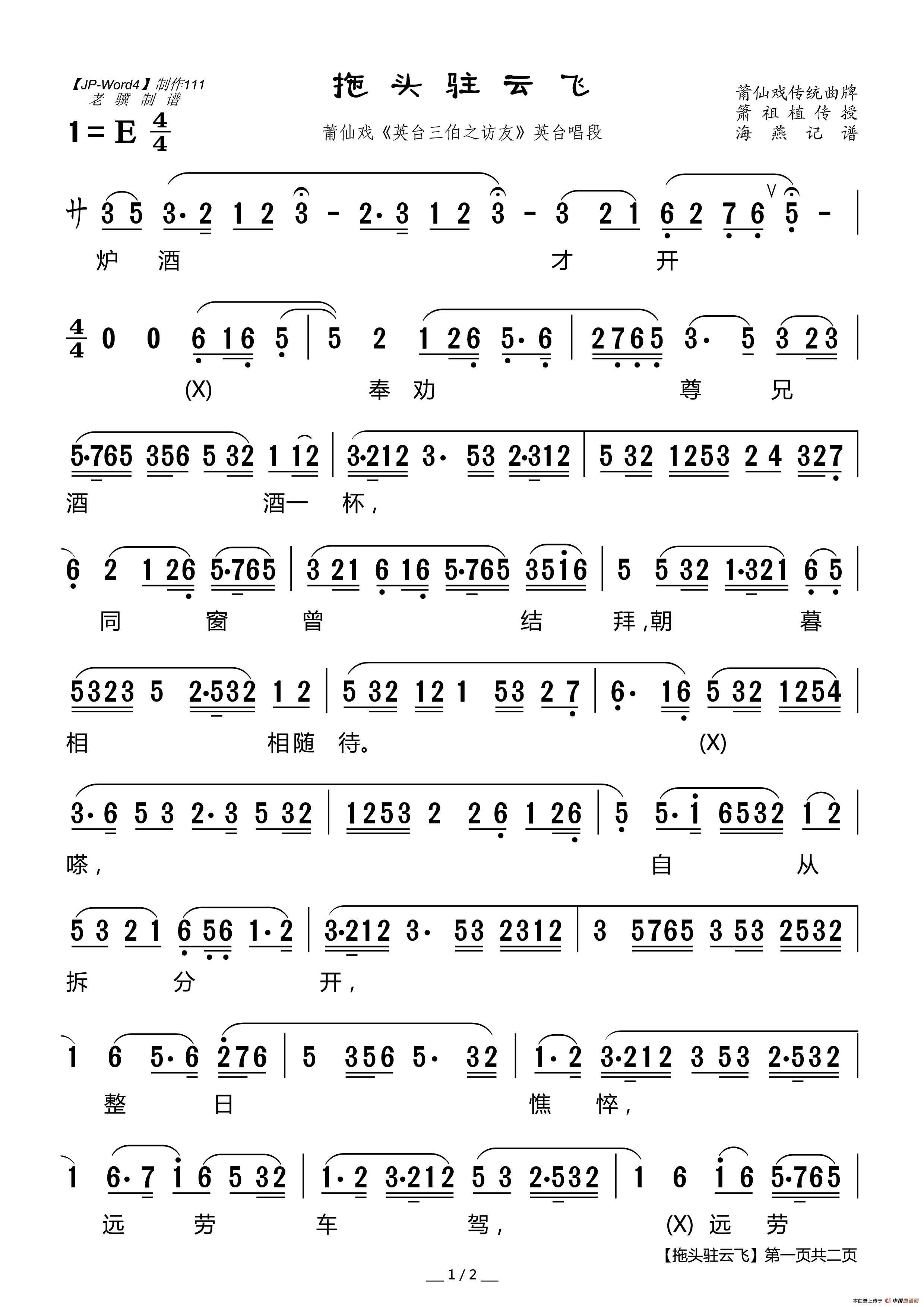 拖头驻云飞(莆仙戏《英台三伯之访友》英台唱段)