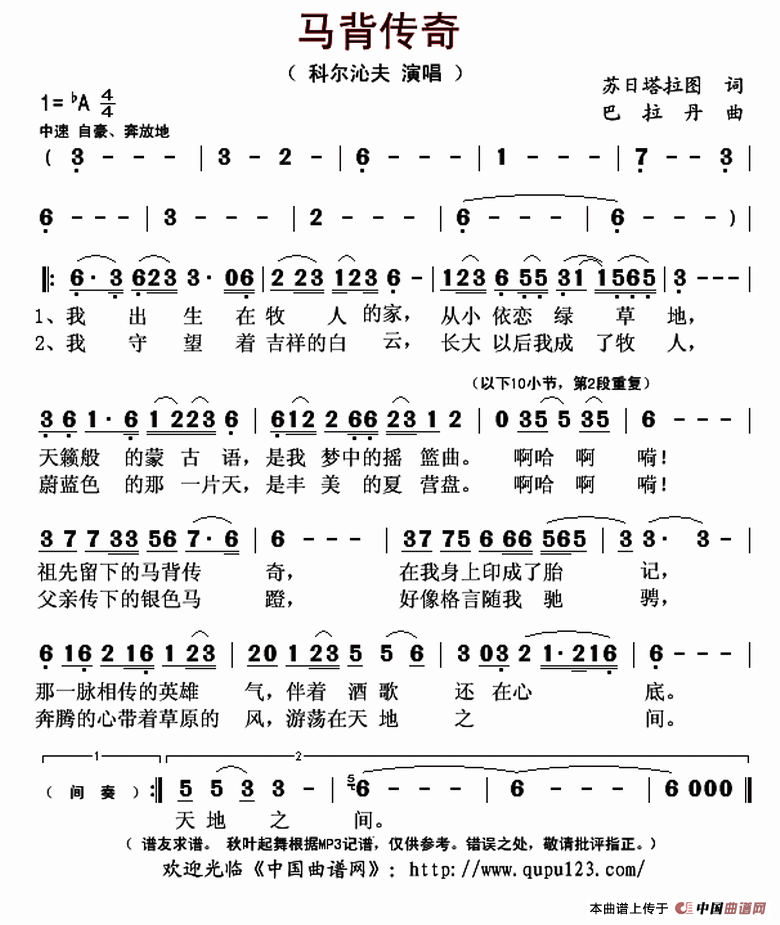 演唱:科尔沁夫 词:苏日塔拉图 曲:巴拉丹