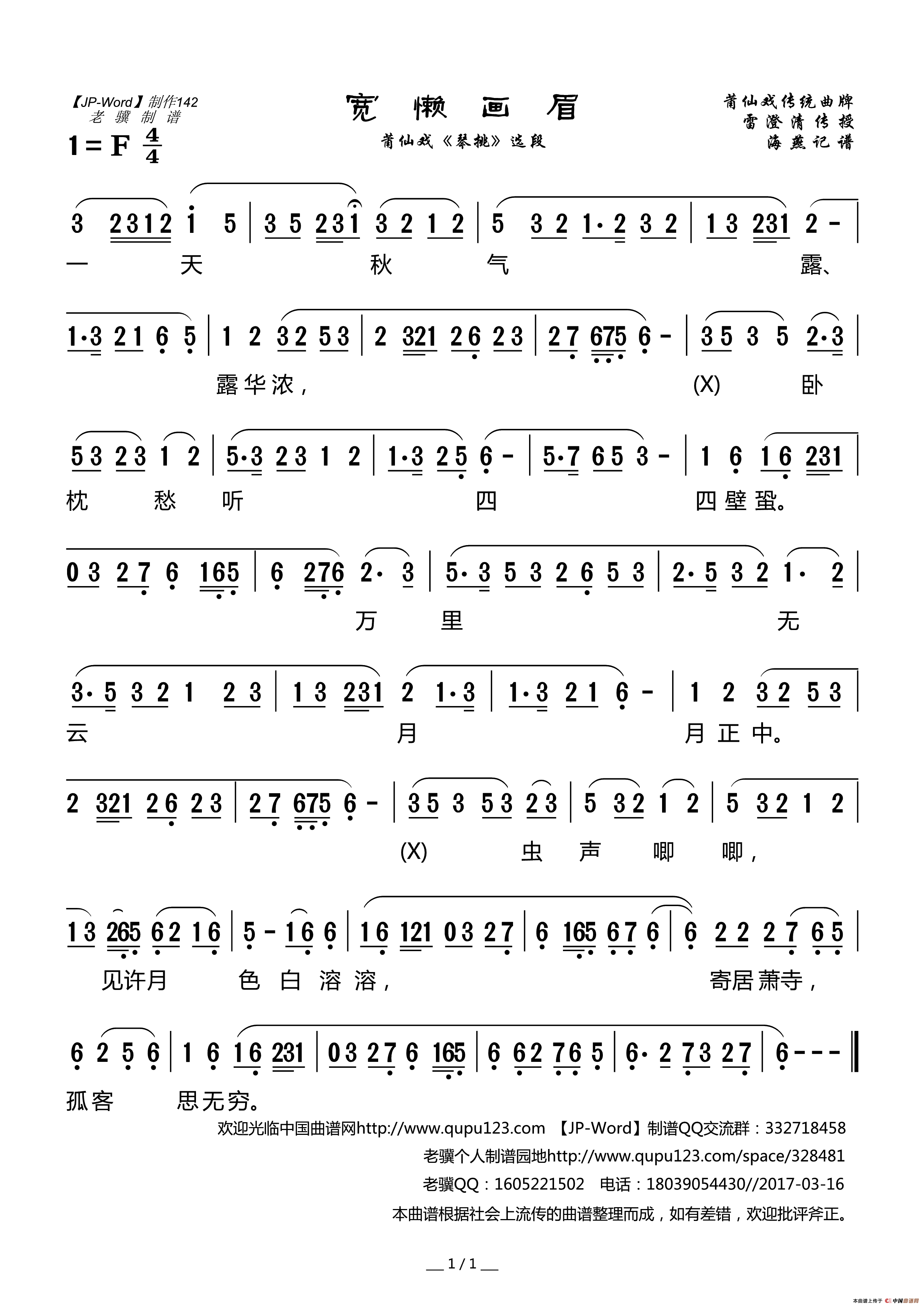 关于《[莆仙戏]宽懒画眉》曲谱的评论