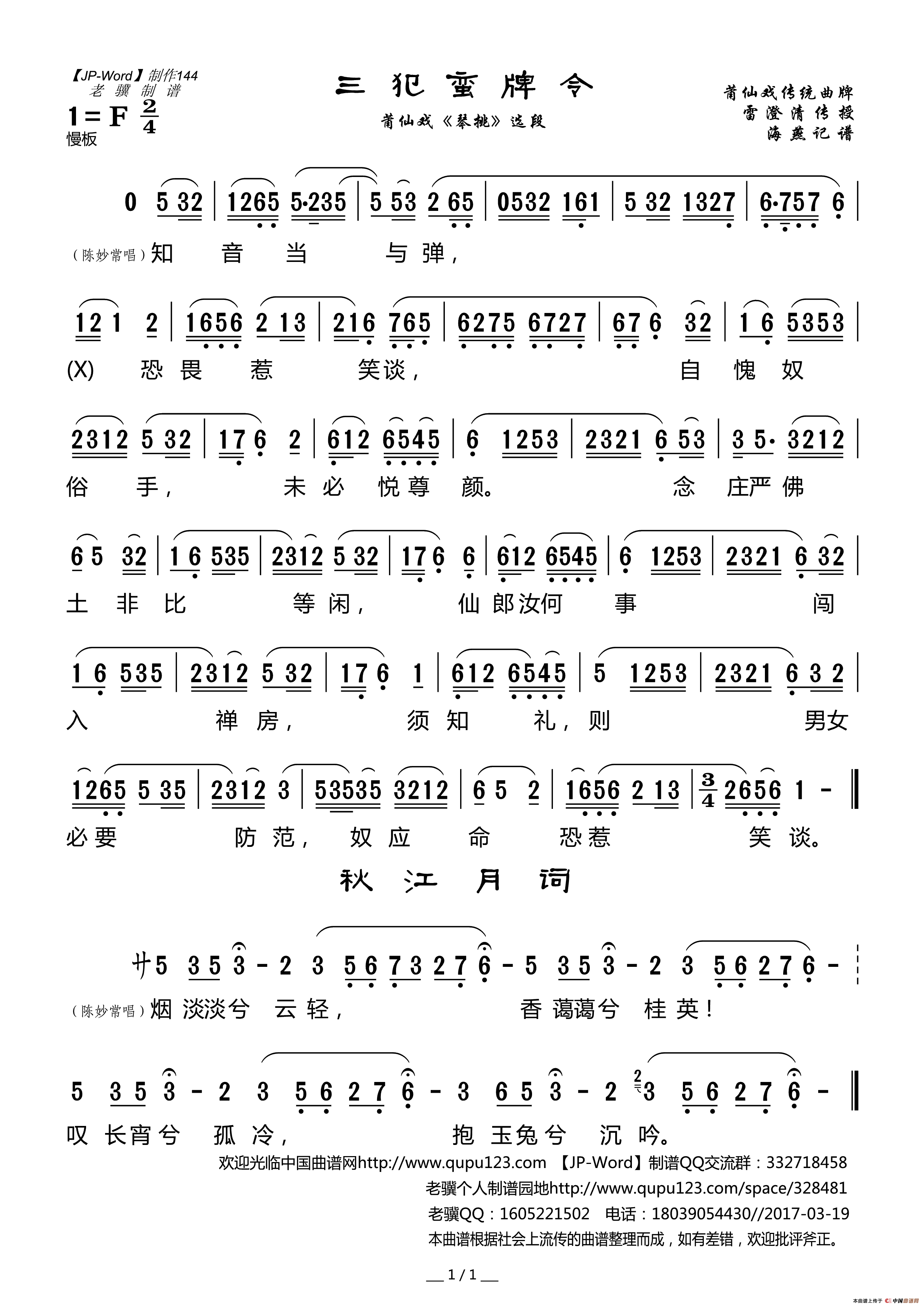 关于《[莆仙戏]三犯蛮牌令\秋江月词》曲谱的评论