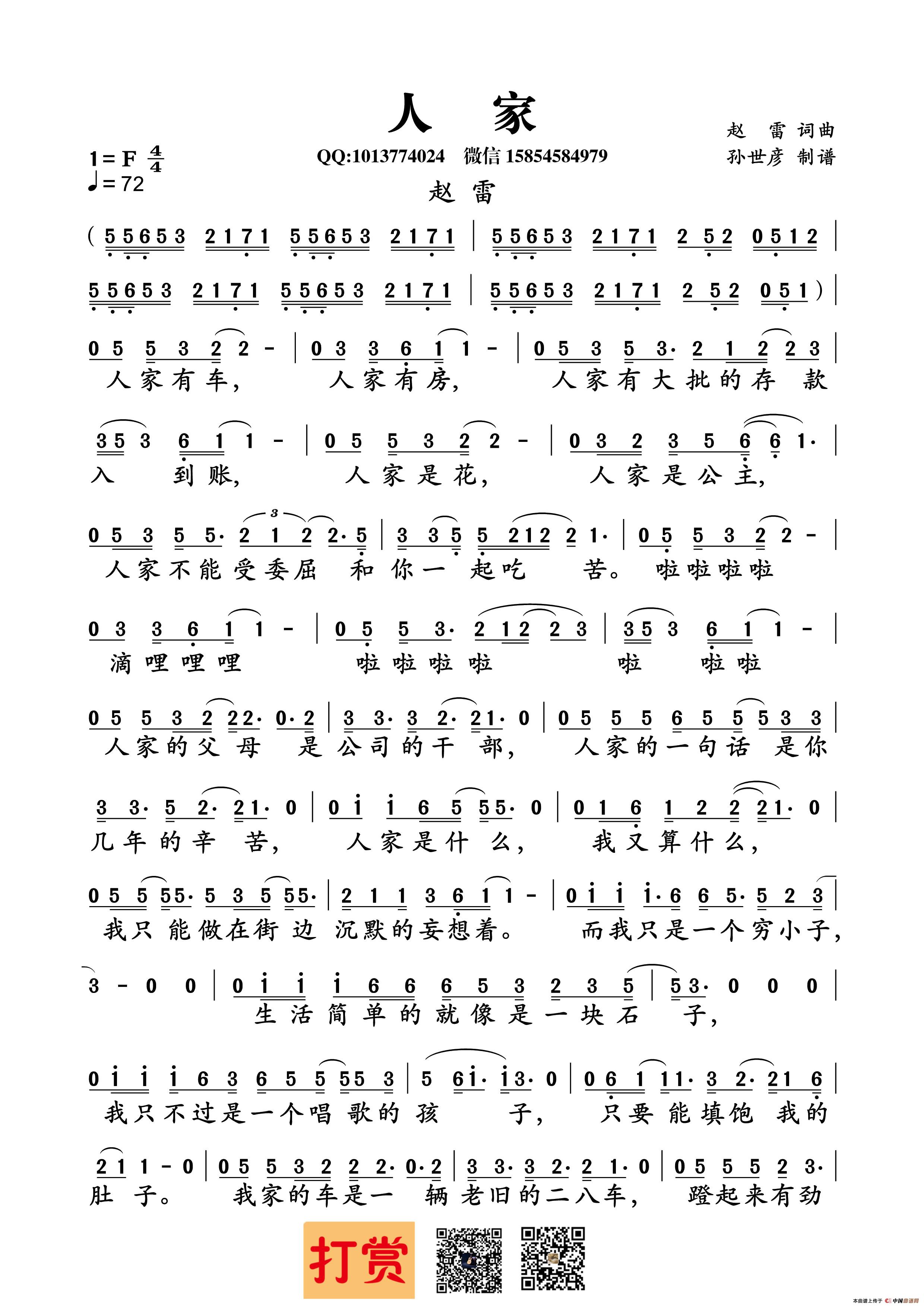 关于《人家》曲谱的评论