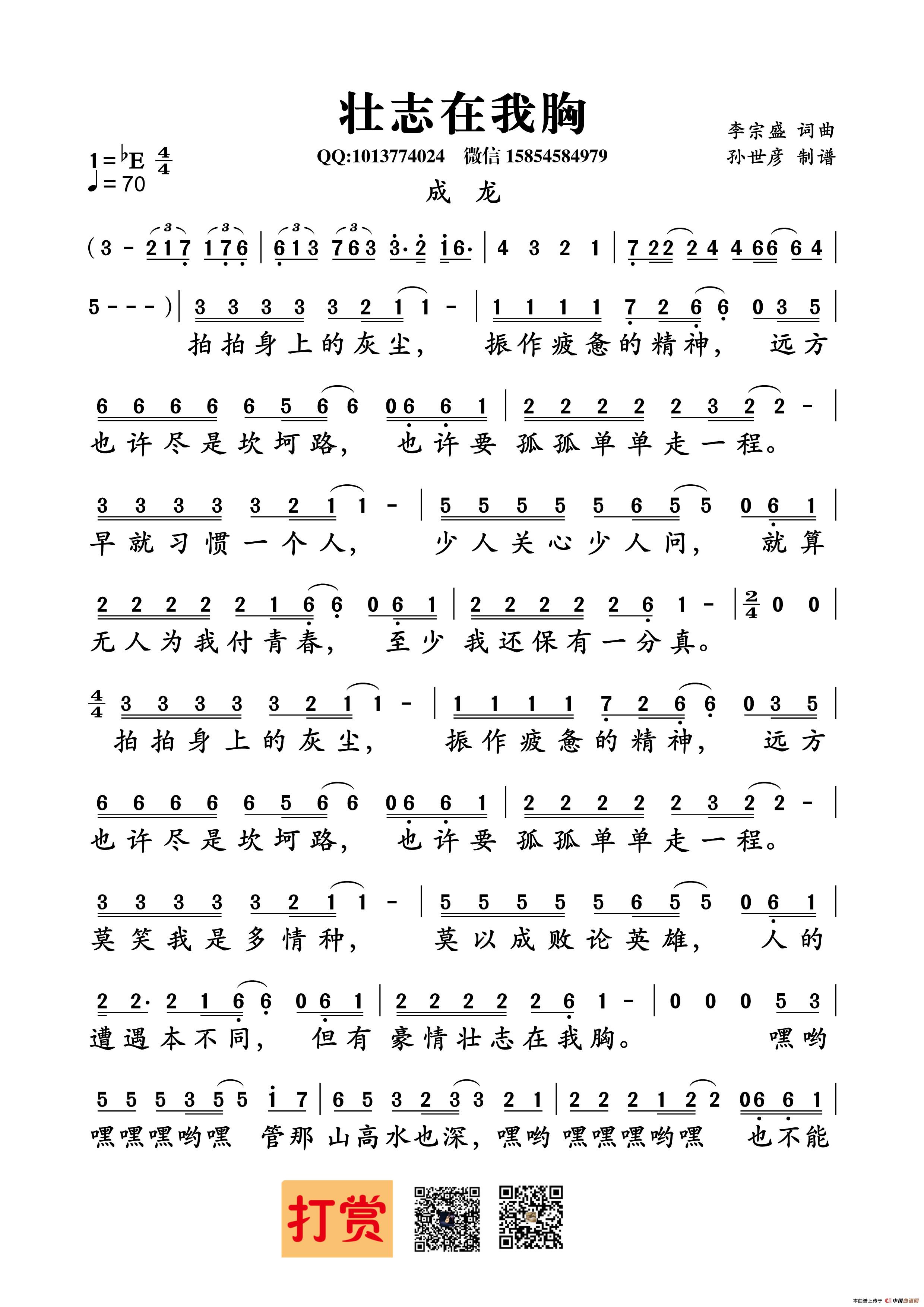《壮志在我胸》是电视连续剧《江湖再见》主题曲,由李宗盛作词作曲,成龙演唱。
