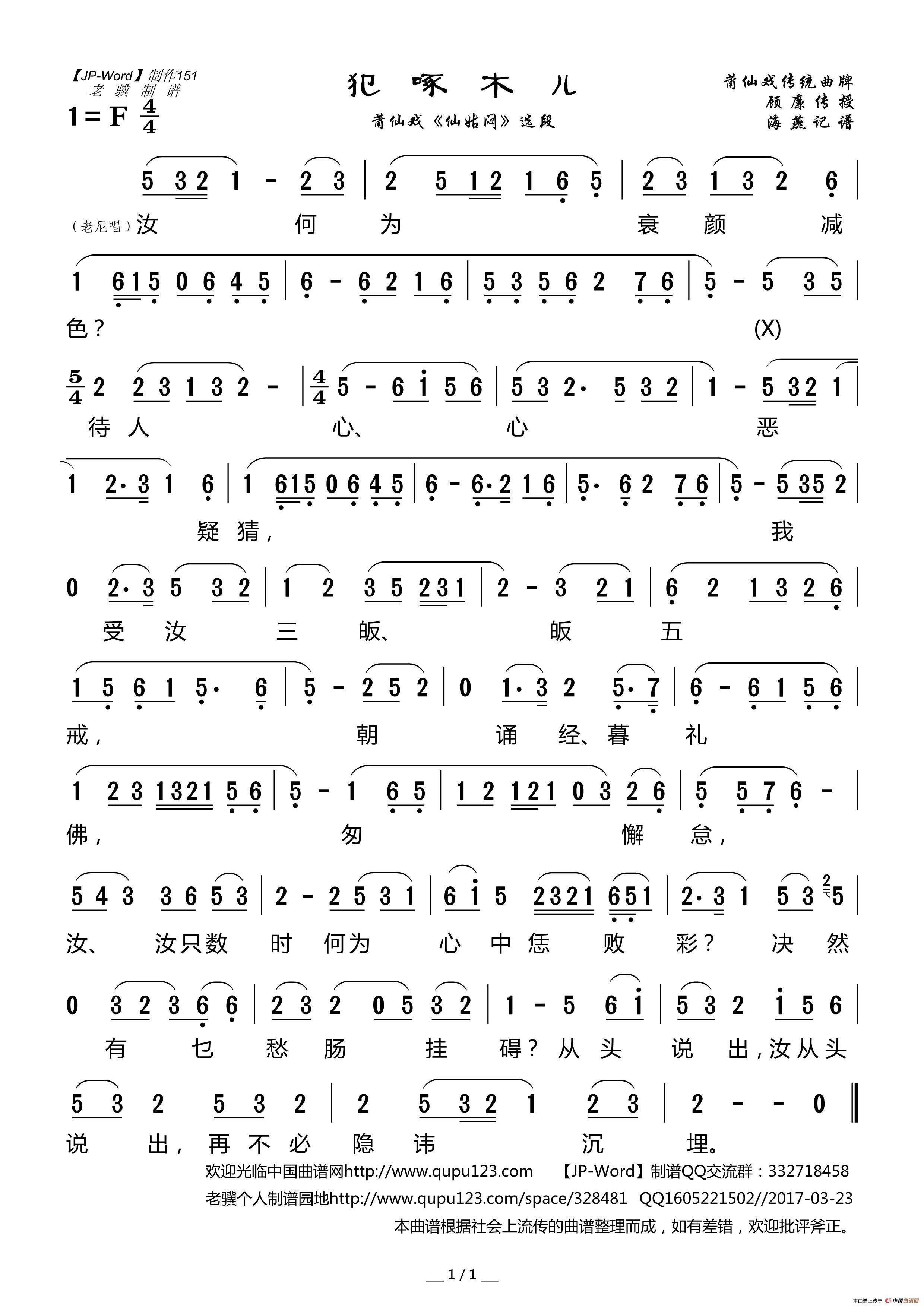 关于《[莆仙戏]犯啄木儿》曲谱的评论