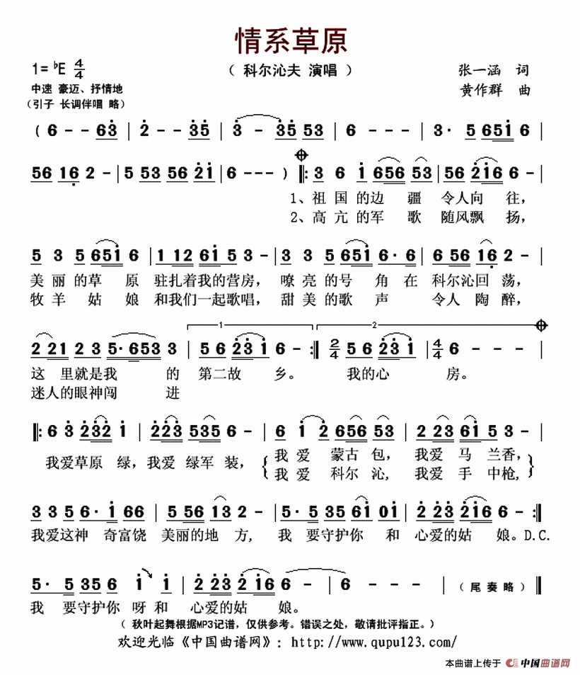 作词 张一涵 作曲 黄作群 演唱 科尔沁夫