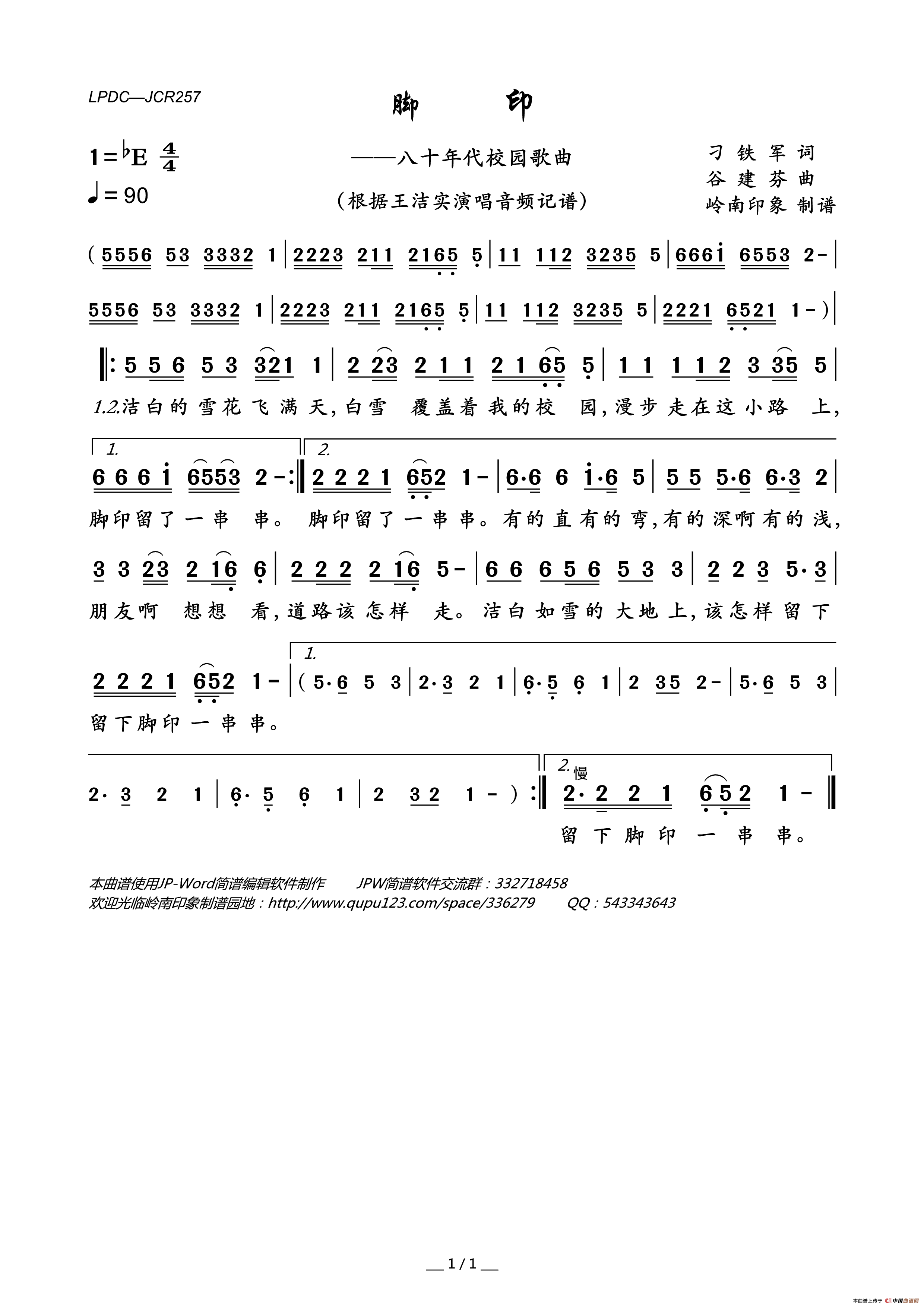 关于《脚印》曲谱的评论