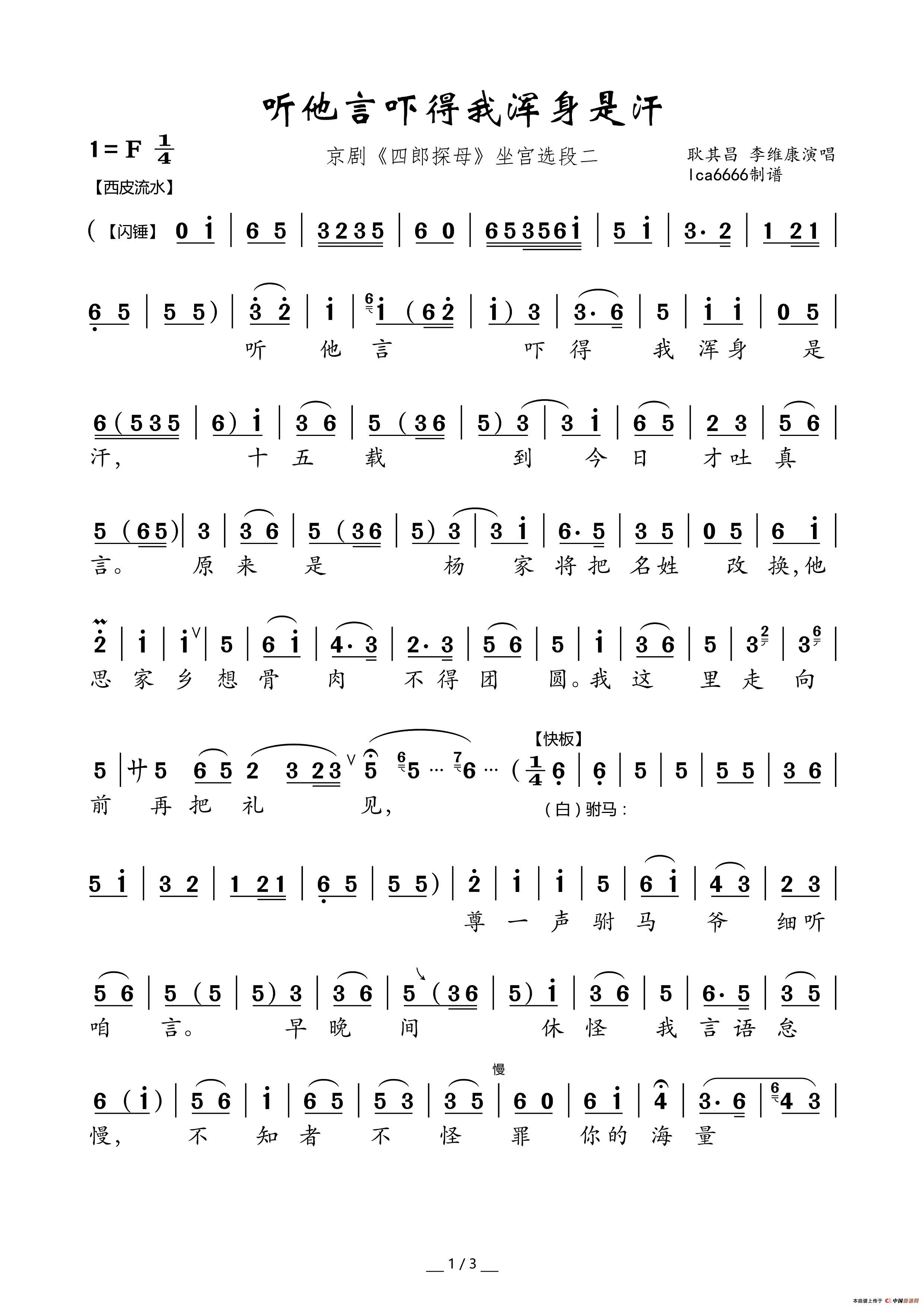 听他言吓得我浑身是汗(京剧《四郎探母》坐宫选段二)