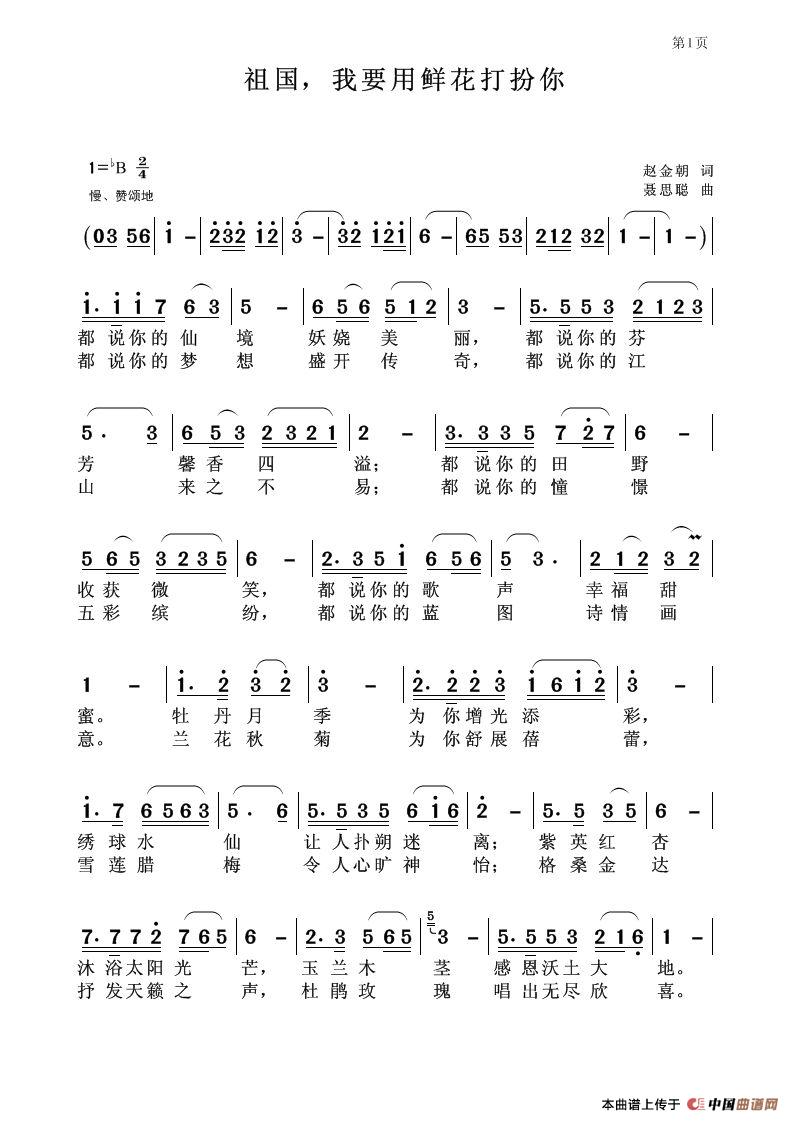 关于《祖国,我要用鲜花打扮你》曲谱的评论