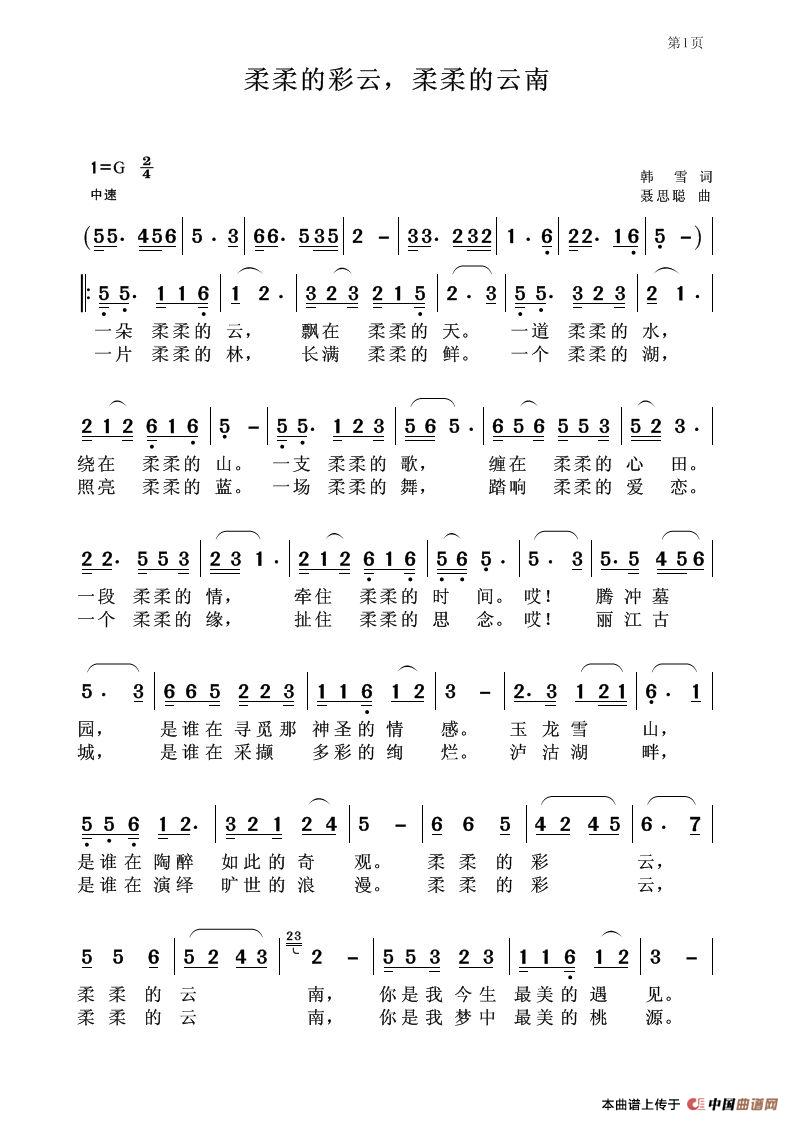 关于《柔柔的彩云,柔柔的云南》曲谱的评论