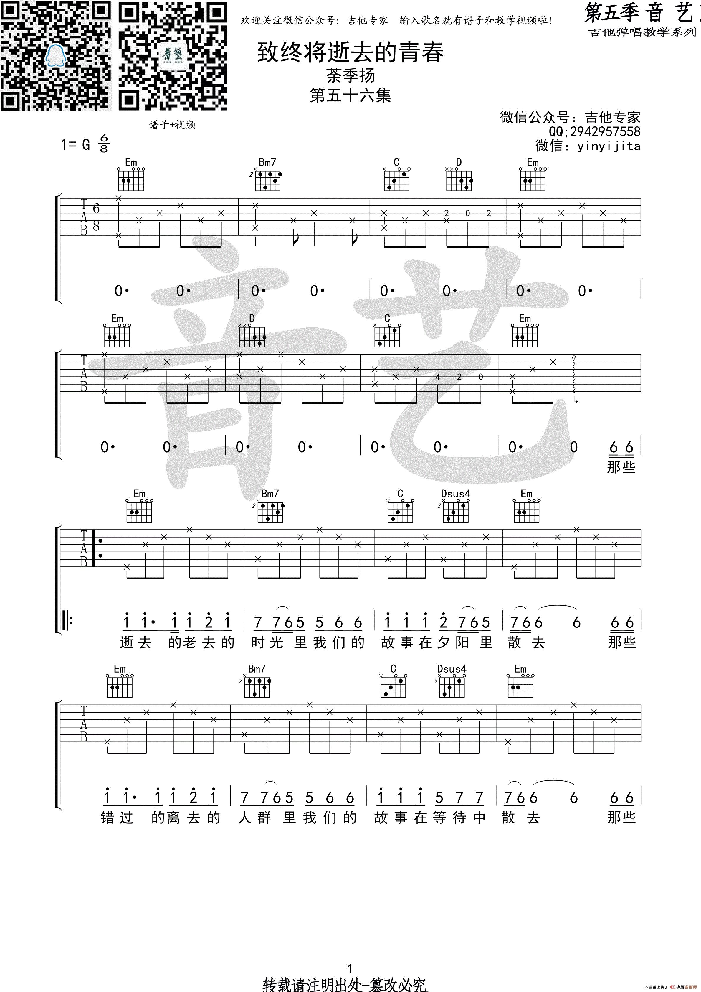 微信公众号:吉他专家 输入歌名就有谱子啦, QQ:2942957558 微信:yinyijita