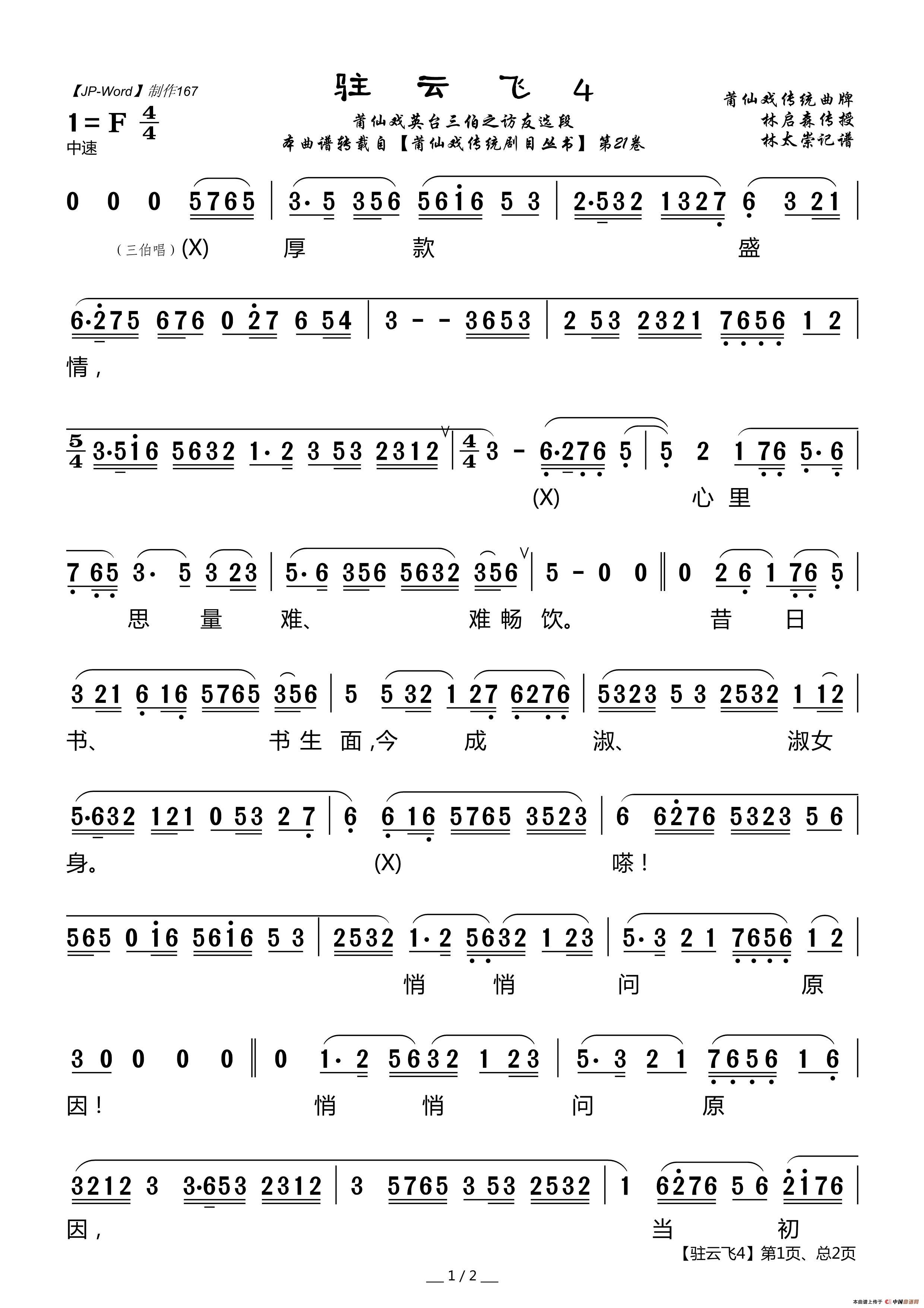 关于《[莆仙戏]驻云飞4》曲谱的评论