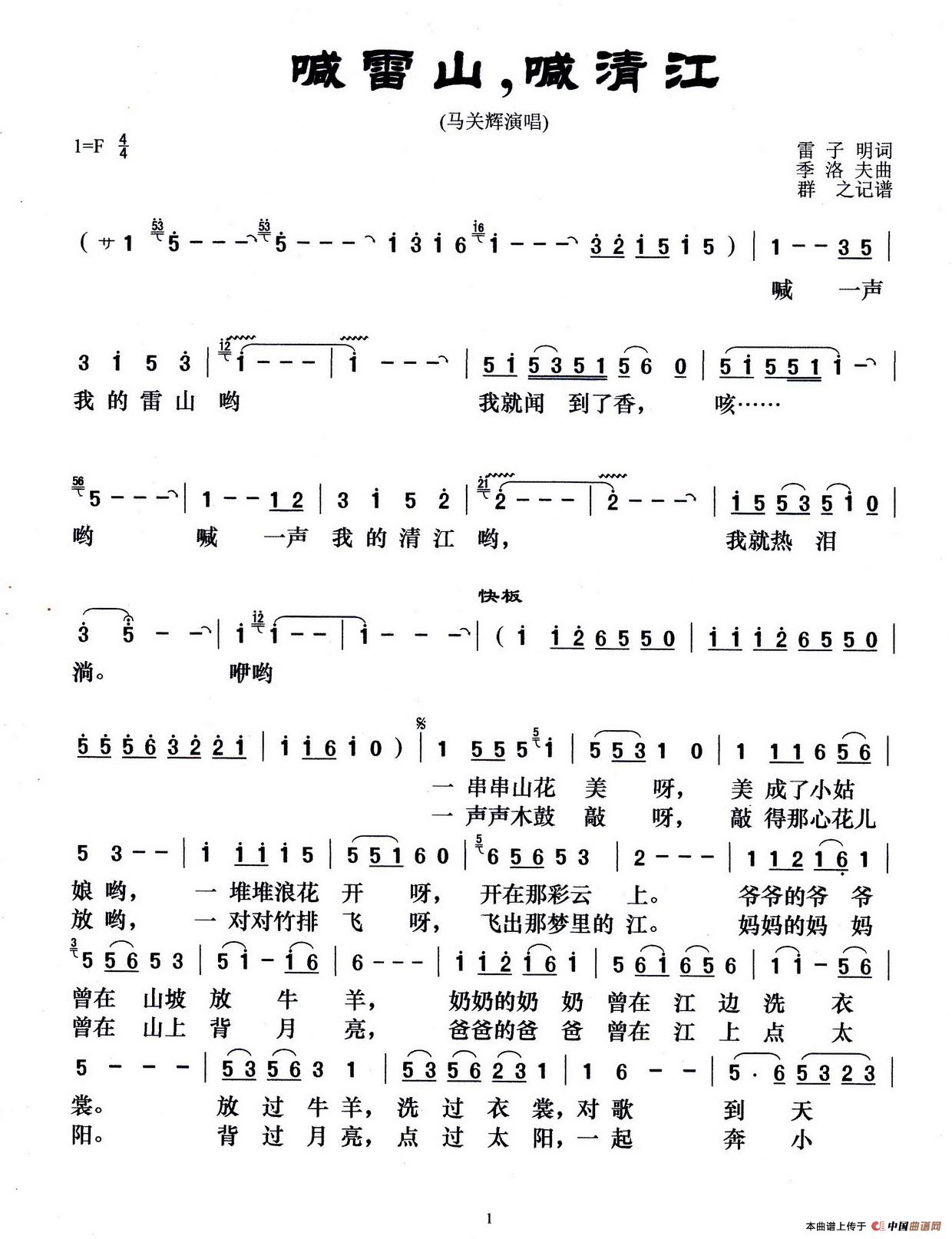 喊雷山,喊清江(雷子明词 季洛夫曲)