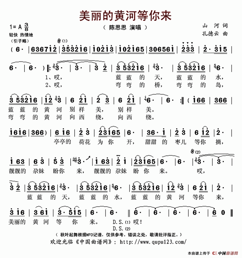 关于《美丽的黄河等你来》曲谱的评论