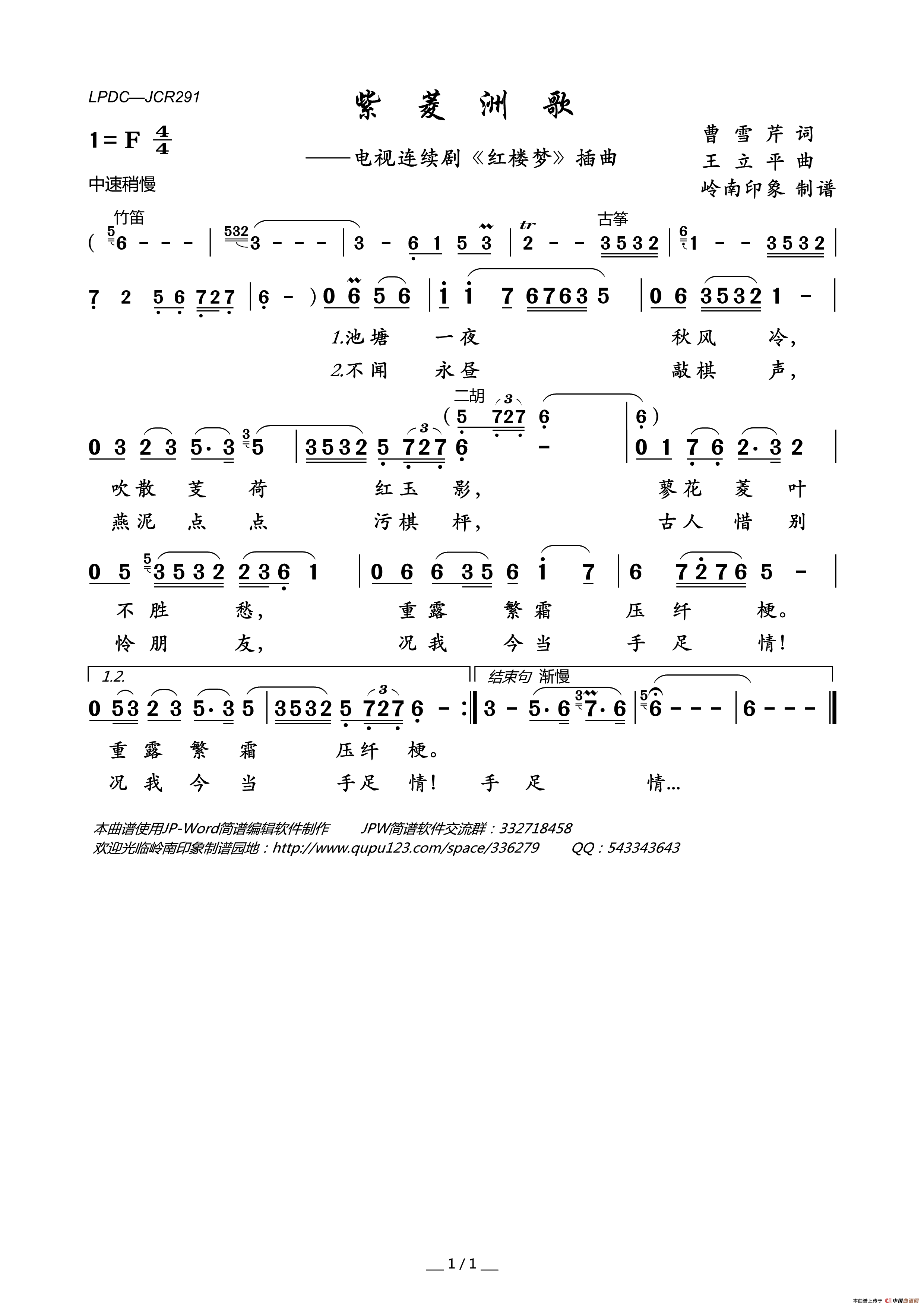 紫菱洲歌(电视连续剧《红楼梦》插曲)