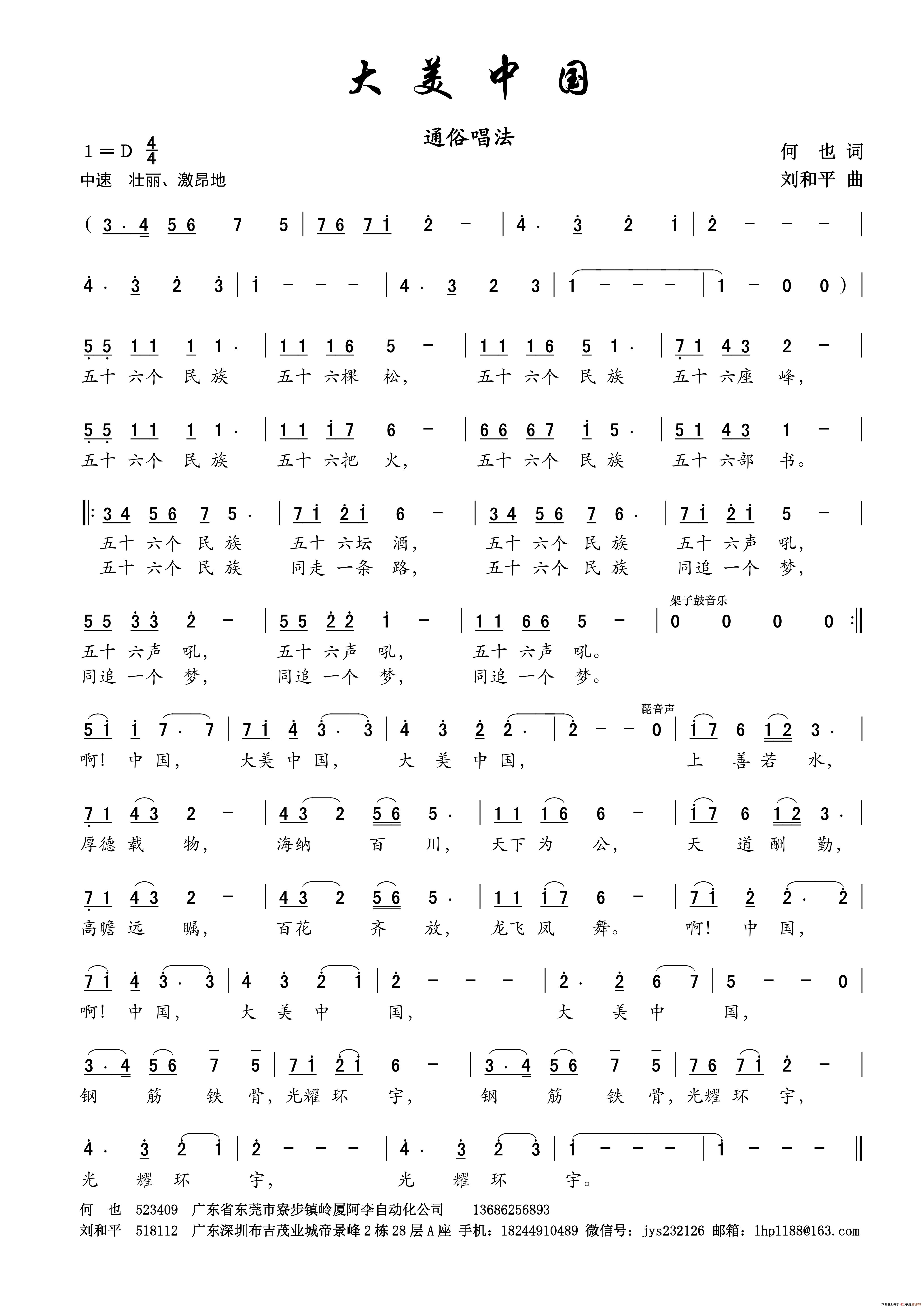 大美中国(同名异曲版本之五/通俗唱法)(1)_原文件名:同名异曲版本之五歌谱《大美中国》(通俗唱法)何也作词,刘和平作曲0001.jpg
