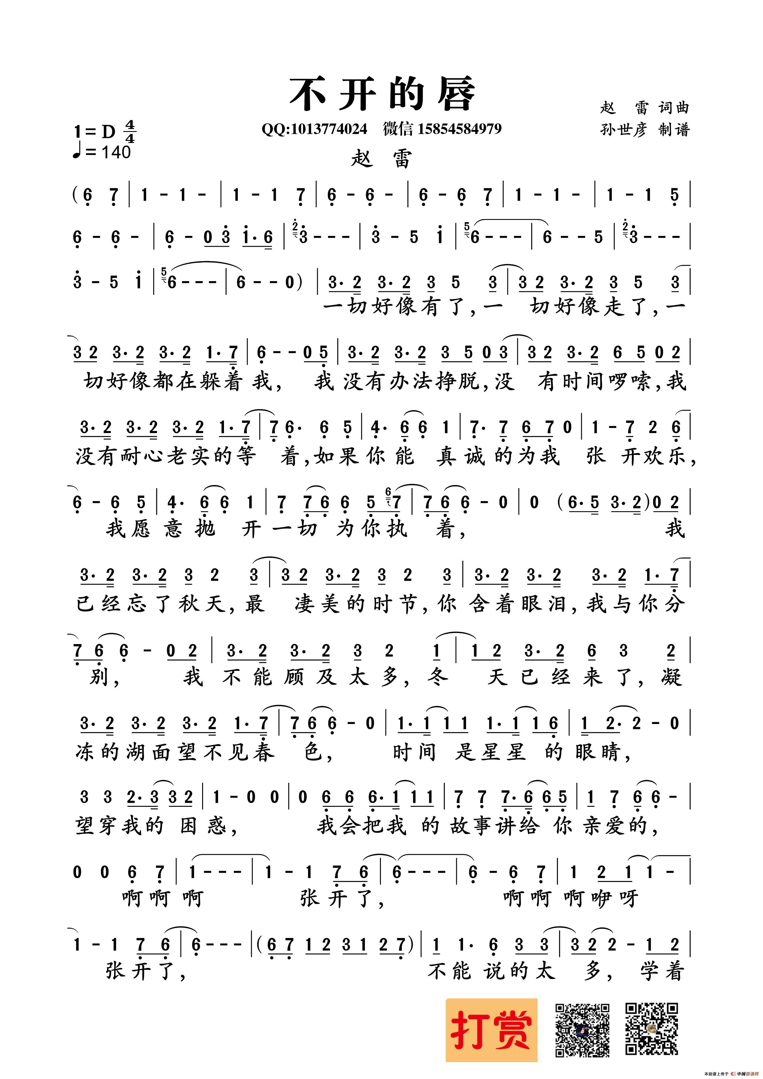关于《不开的唇》曲谱的评论