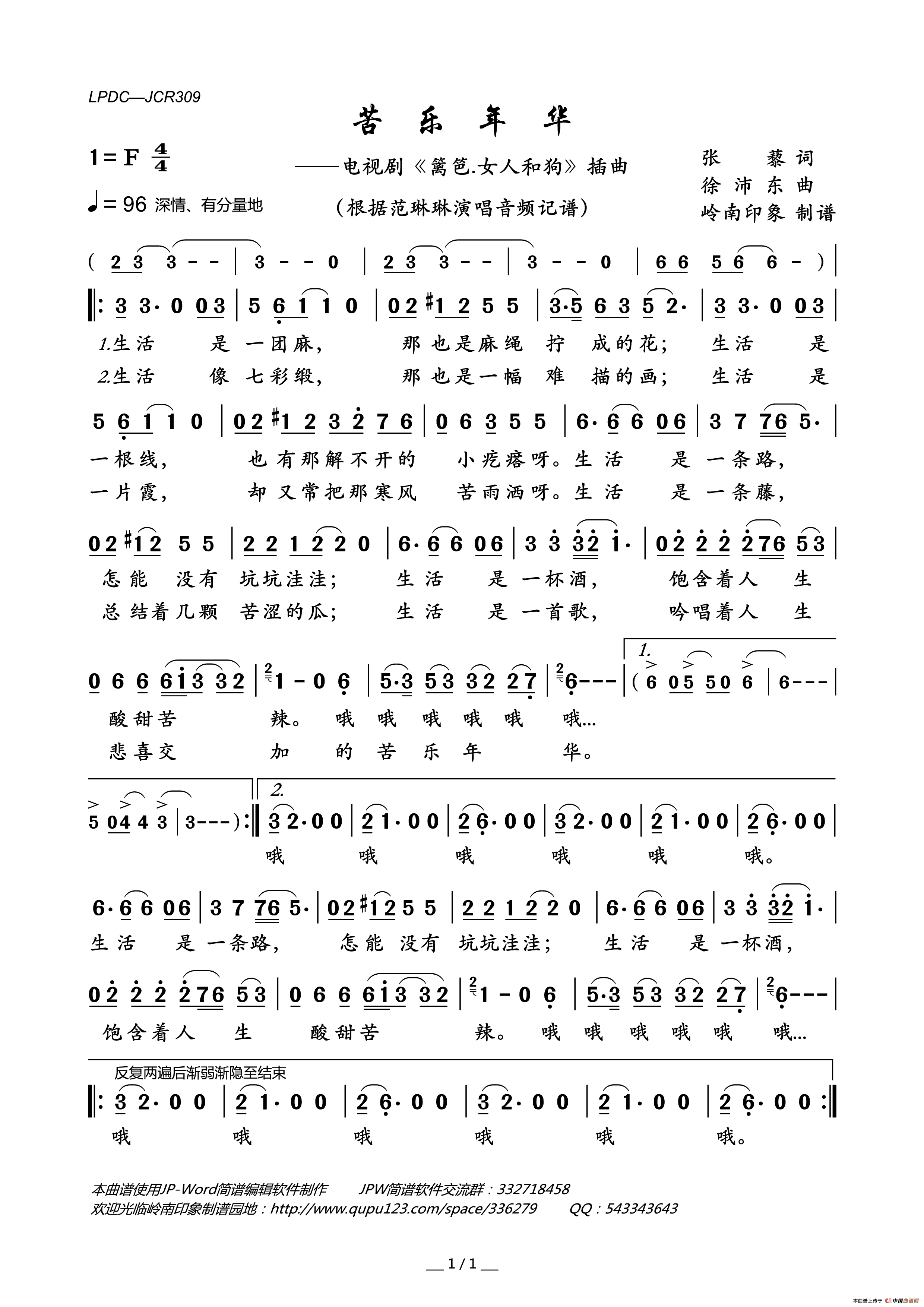 苦乐年华(电视剧《篱笆.女人和狗》插曲)
