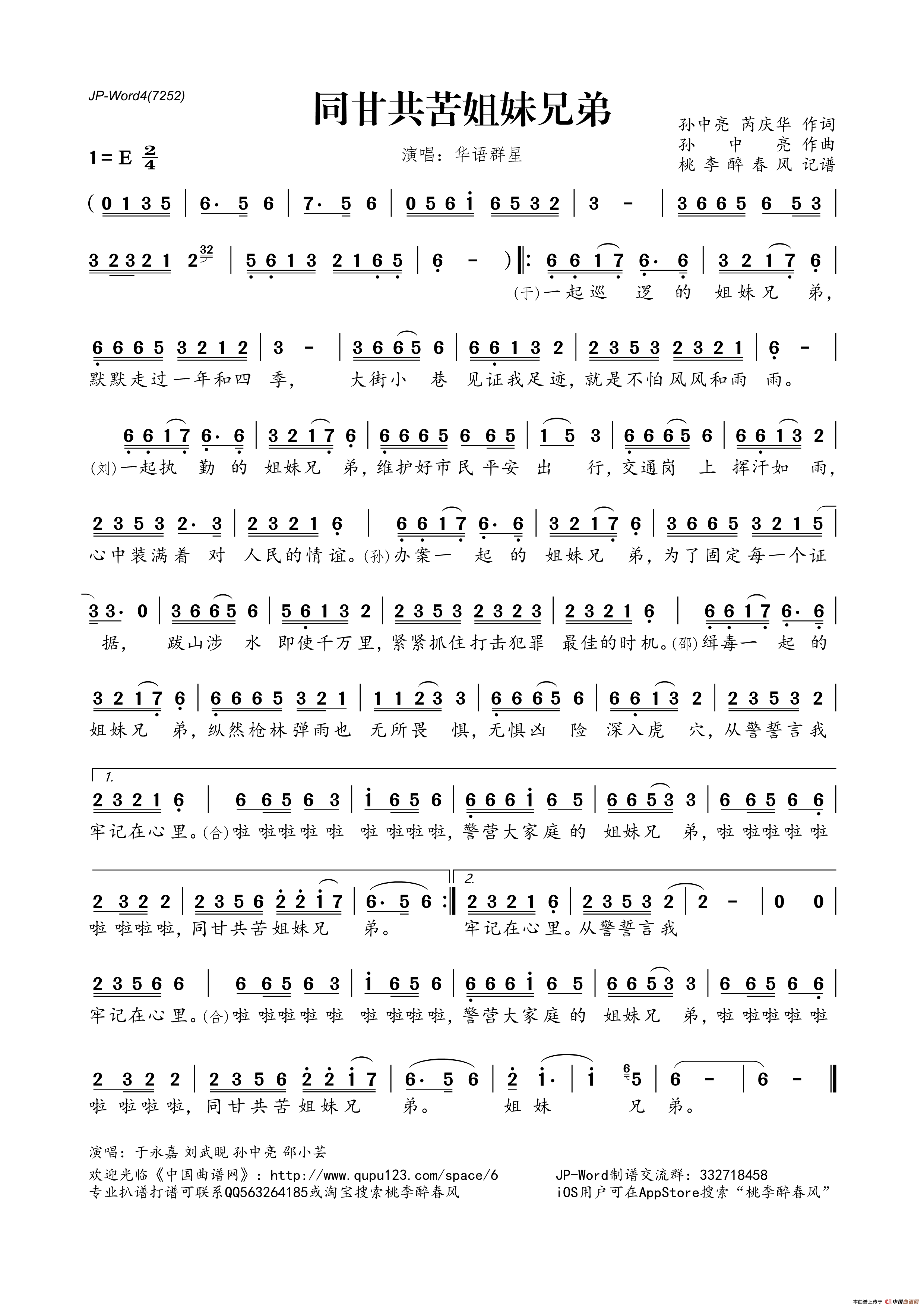 《同甘共苦姐妹兄弟》文本歌词