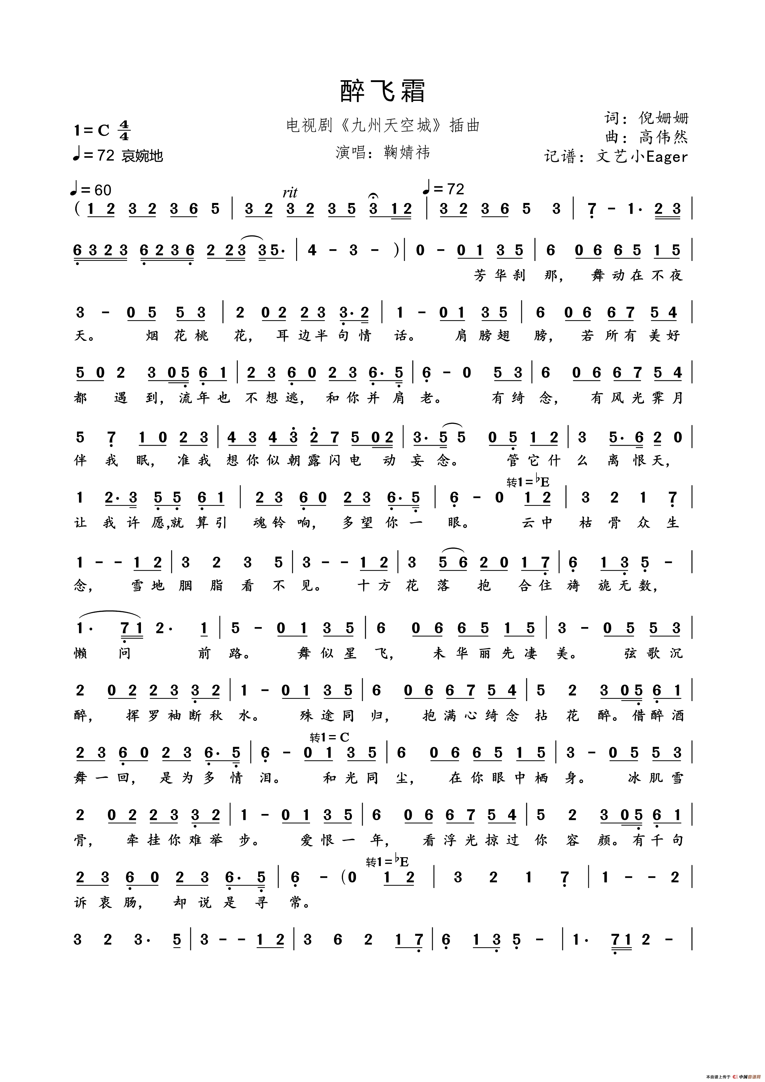 关于《醉飞霜》曲谱的评论