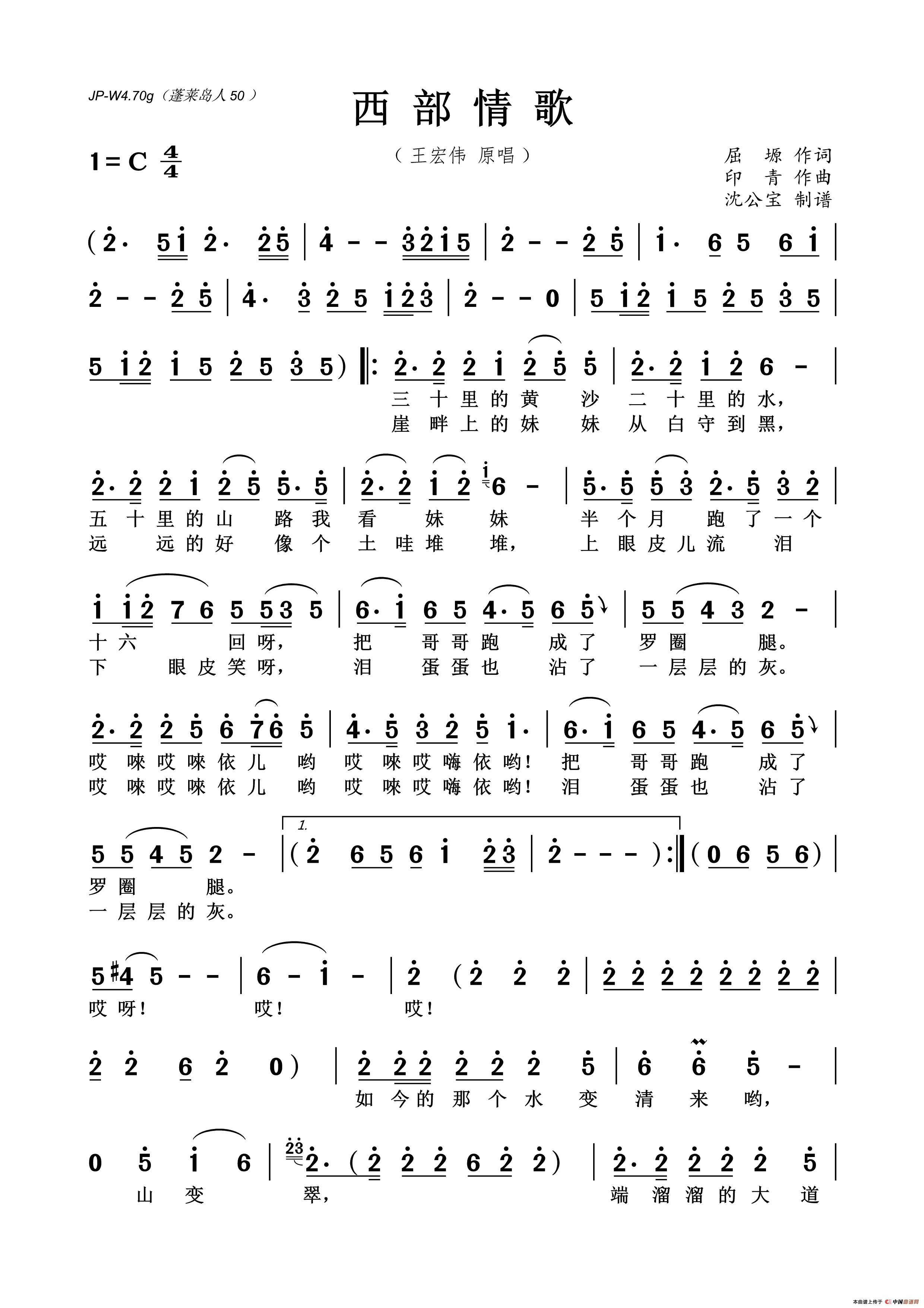 关于《西部情歌》曲谱的评论