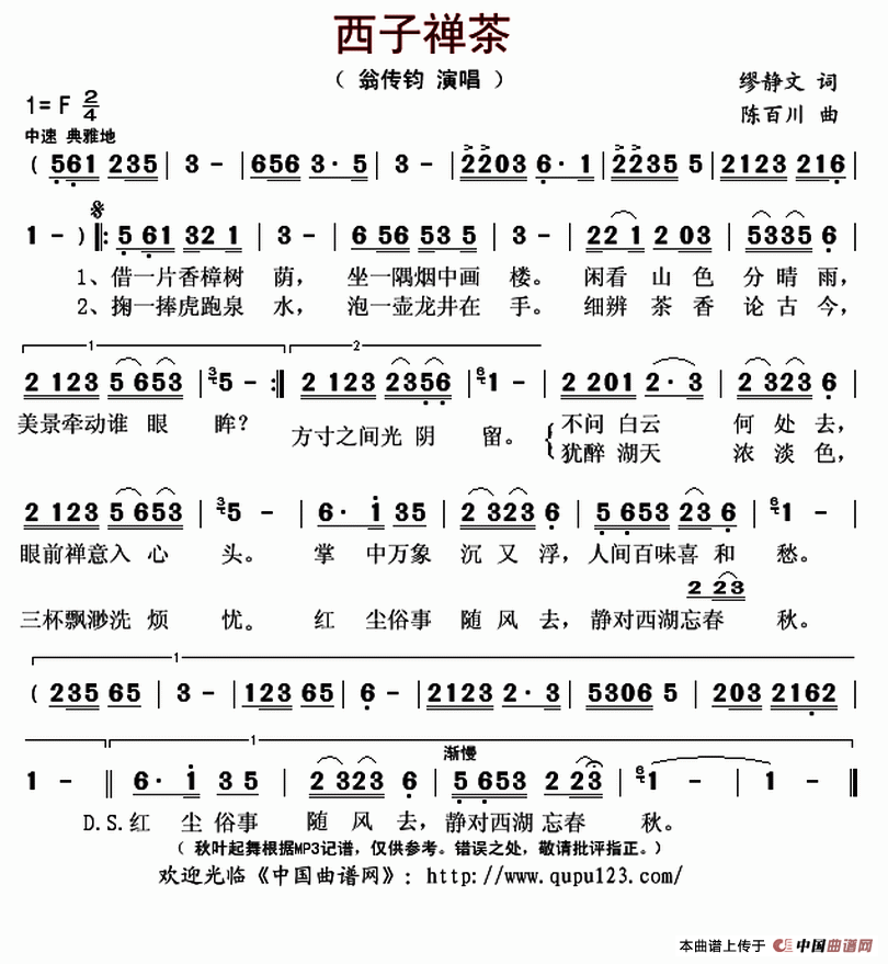 作词:缪静文 作曲:陈百川 演唱:翁传钧 编曲:徐赫力 古筝:翁佳璐