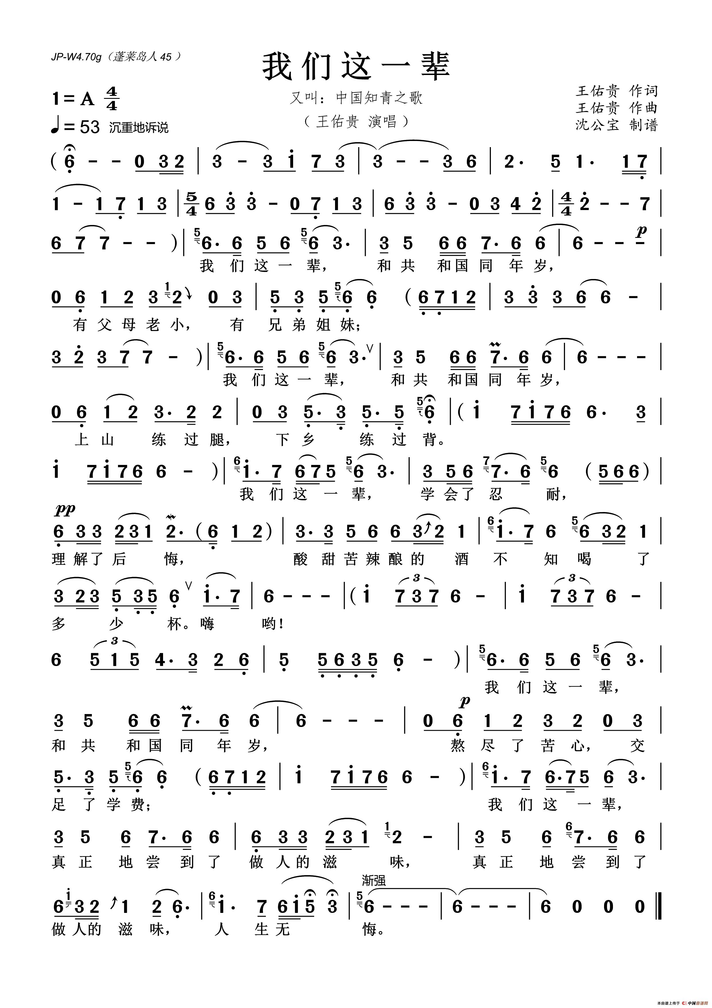 关于《我们这一辈》曲谱的评论