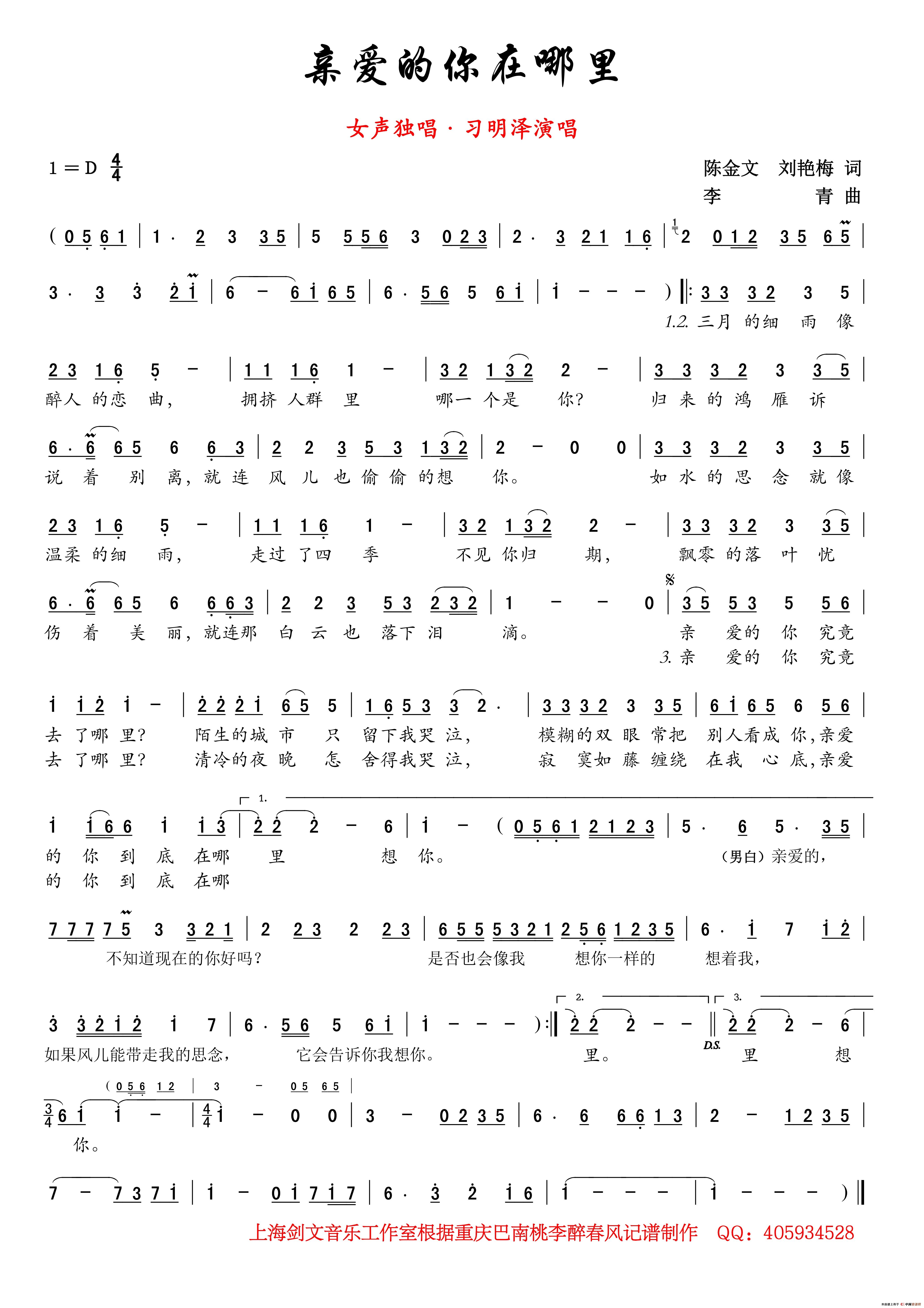 陈金文 刘艳梅 作词 李青 作曲 习明泽 演唱