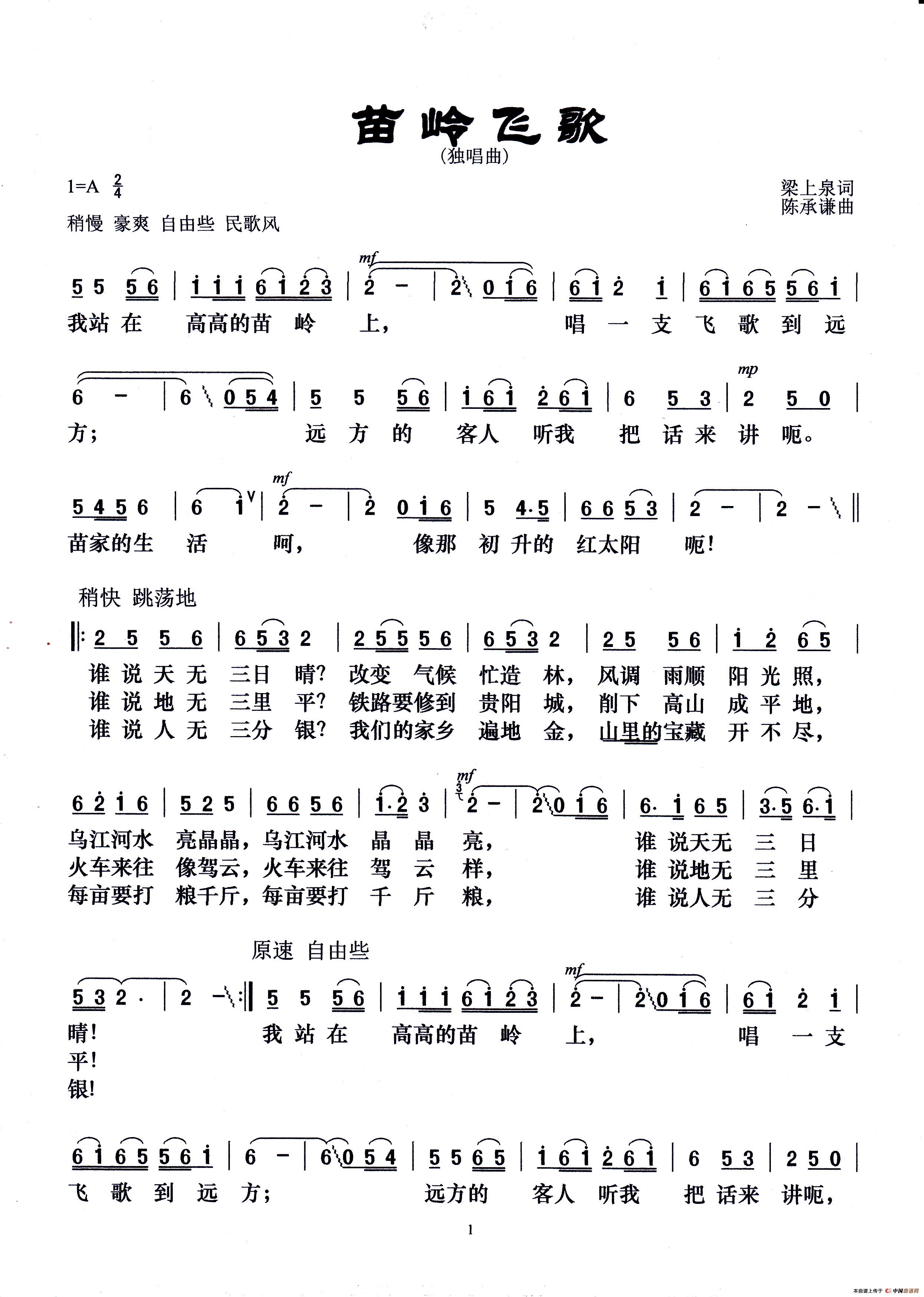 苗岭飞歌(梁上泉词 陈承谦曲)(1)_原文件名:苗岭飞歌01.jpg