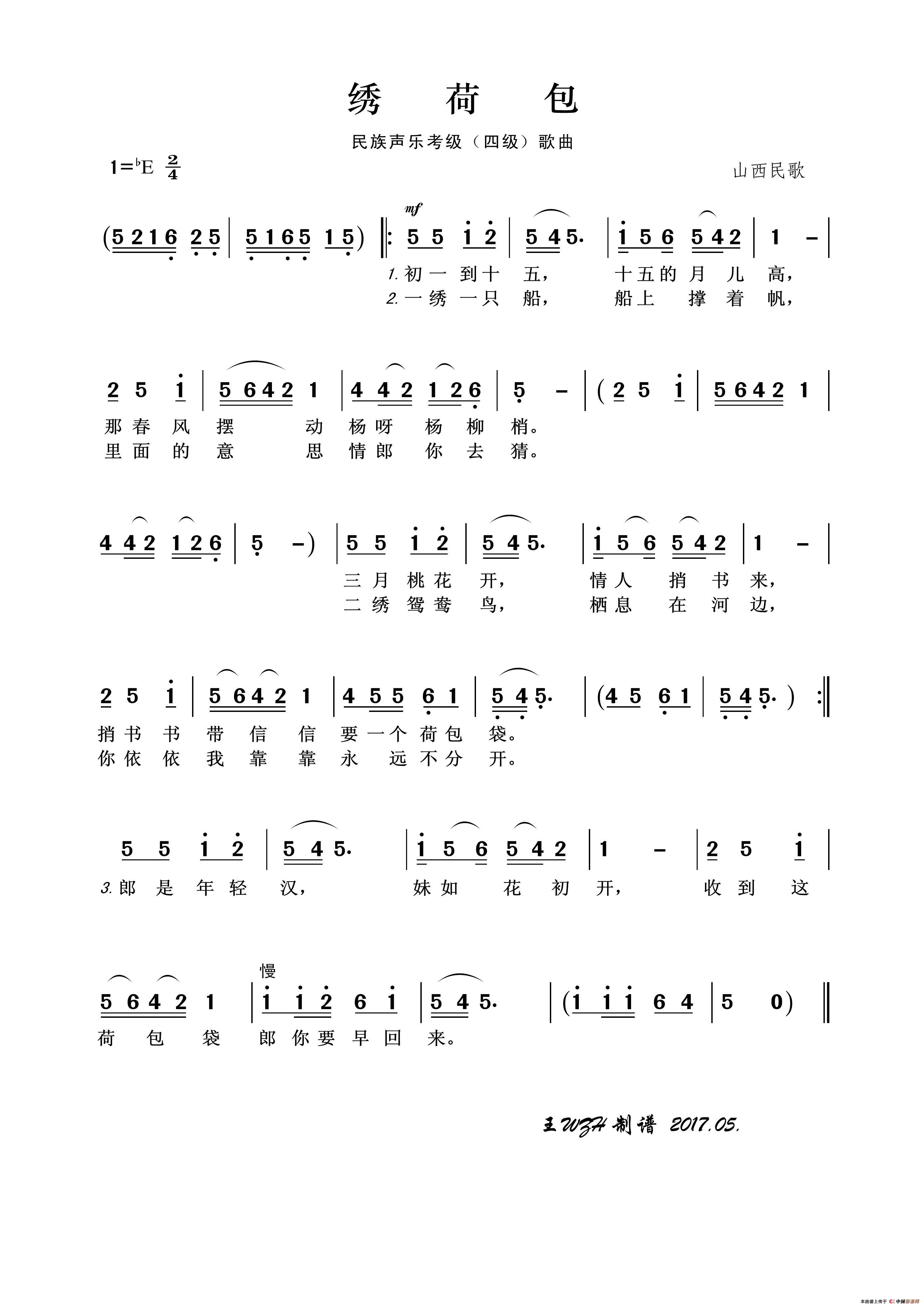 民族声乐考级歌曲:绣荷包(1)_原文件名:绣荷包.jpg