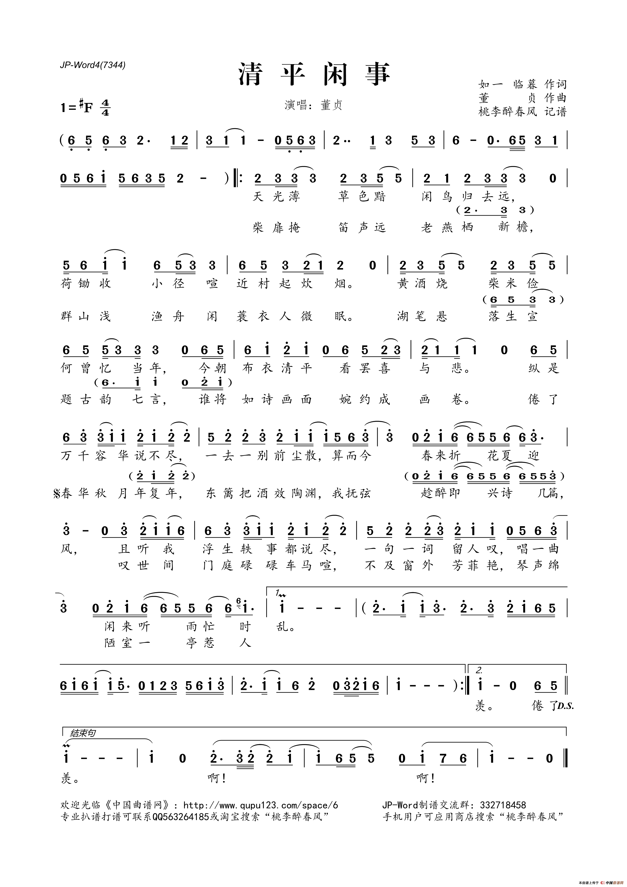 提示:在曲谱图片上单击右键,选择"图片另存为..."即可将曲谱保存到您的电脑中,打印时候可将图片插入到WORD中,调整合适大小打印即可。