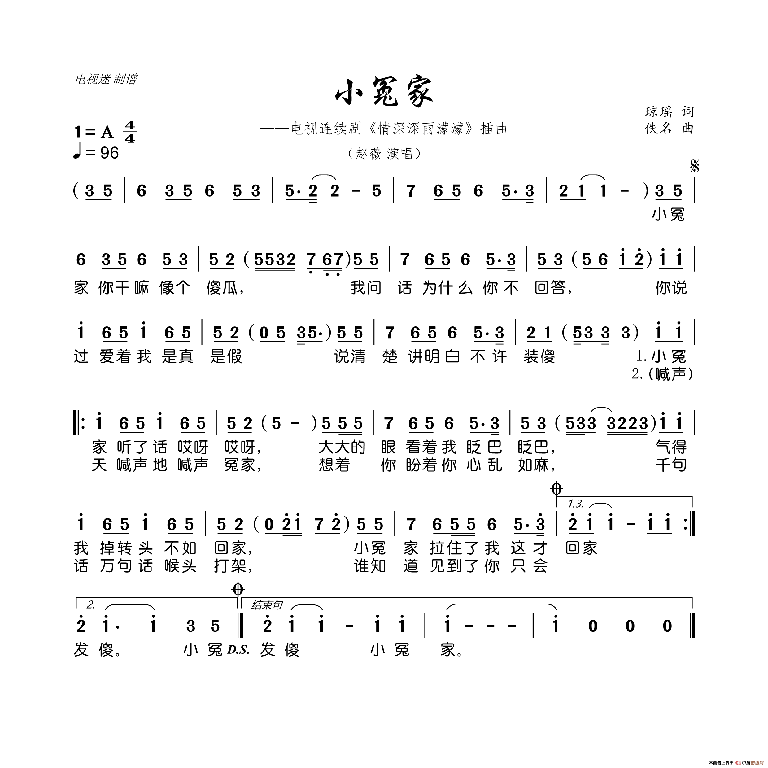 关于《小冤家》曲谱的评论