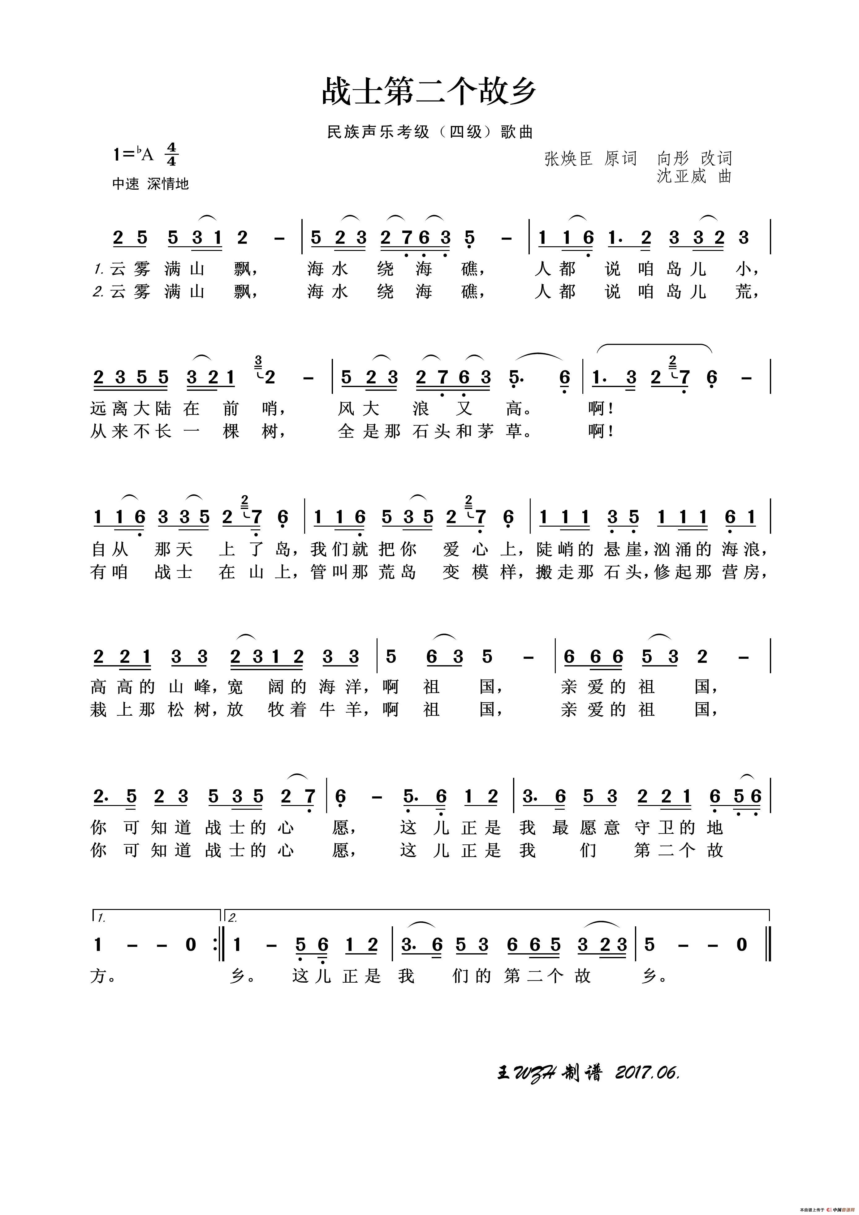 关于《民族声乐考级歌曲:战士第二个故乡》曲谱的评论