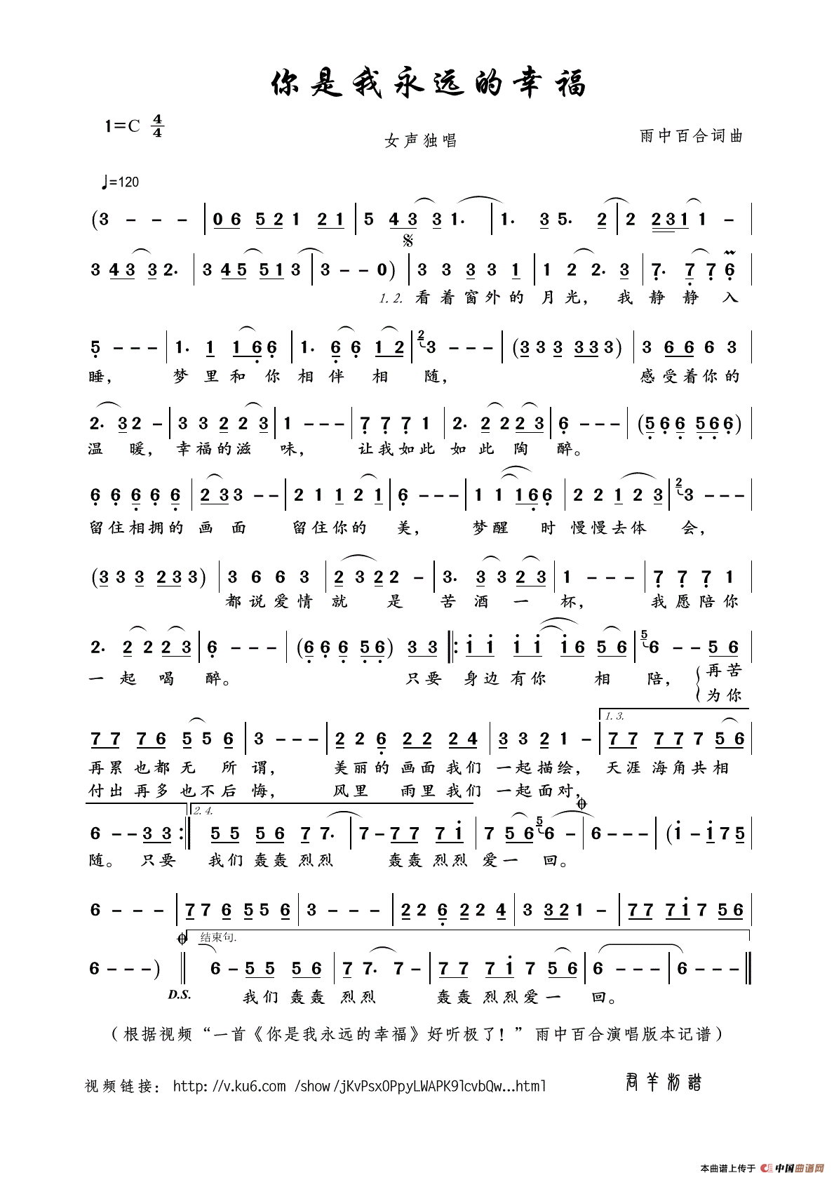 关于《你是我永远的幸福》曲谱的评论
