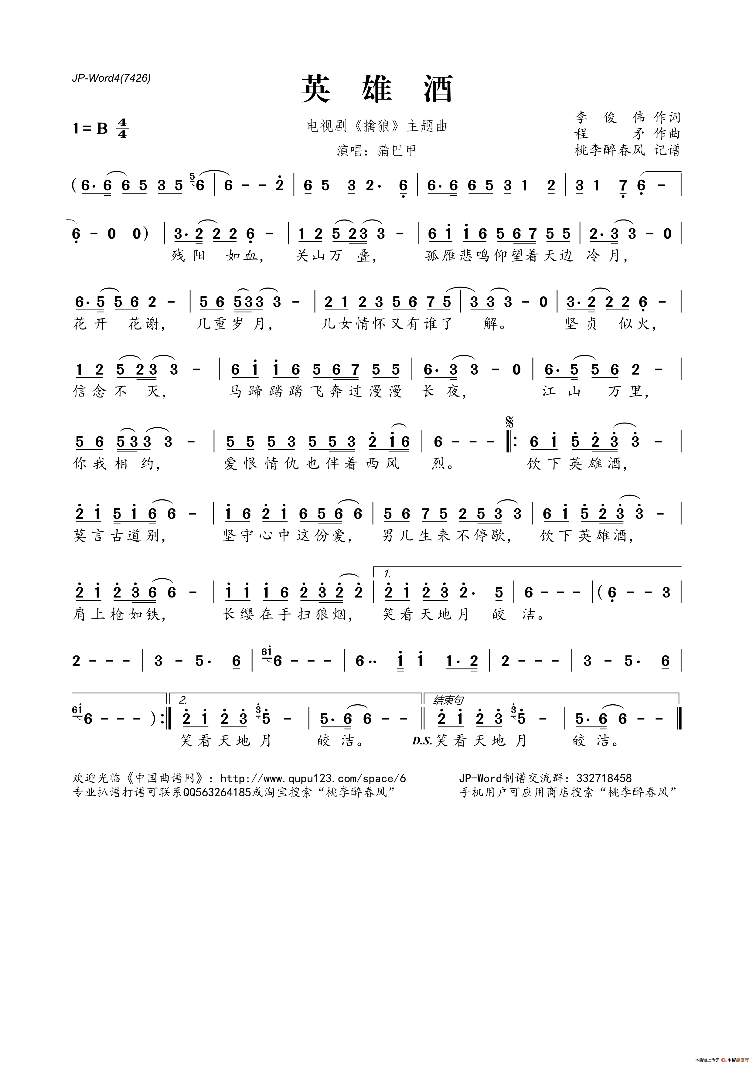 提示:在曲谱图片上单击右键,选择"图片另存为..."即可将曲谱保存到您的电脑中,打印时候可将图片插入到WORD中,调整合适大小打印即可。