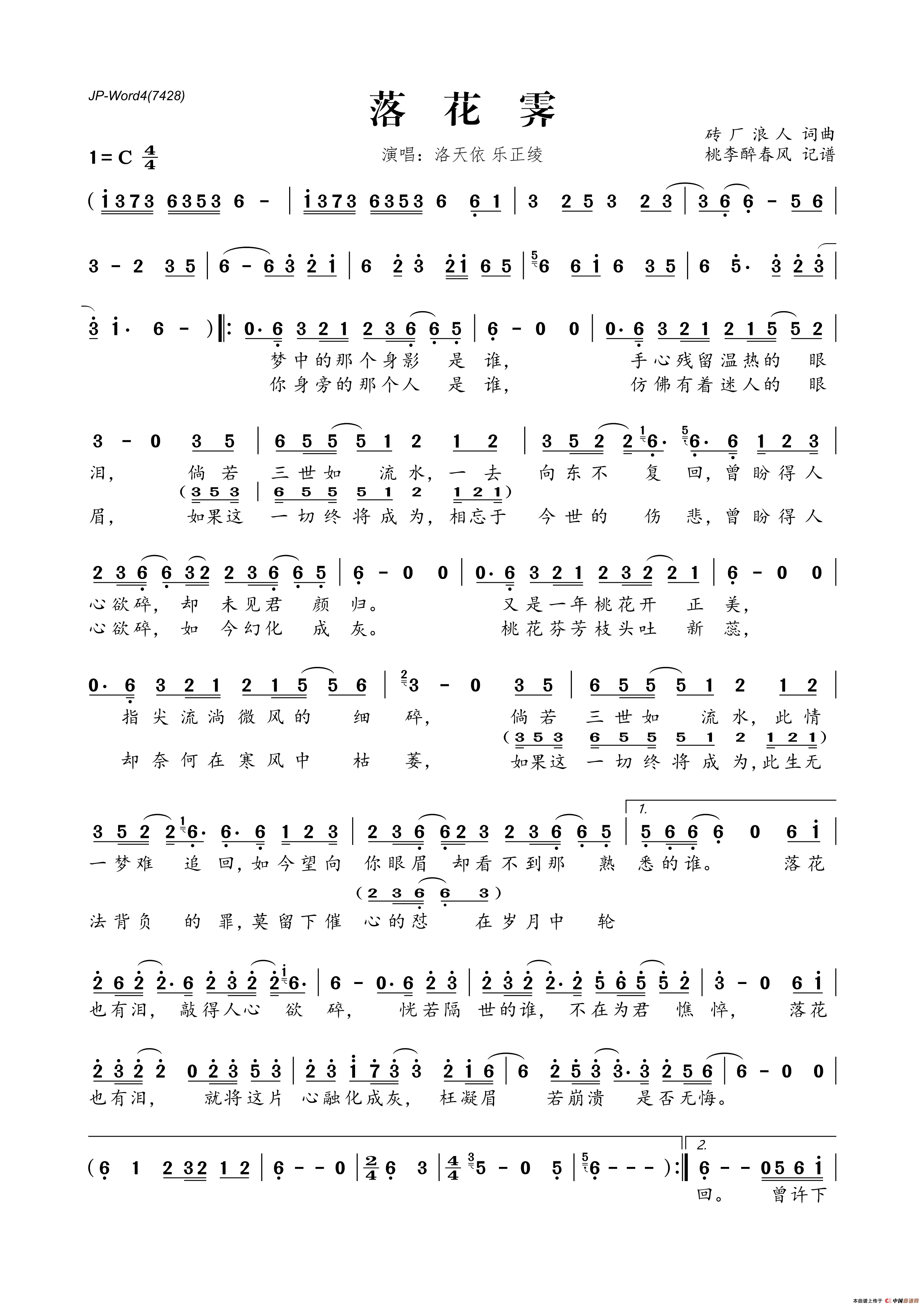 提示:在曲谱图片上单击右键,选择"图片另存为..."即可将曲谱保存到您的电脑中,打印时候可将图片插入到WORD中,调整合适大小打印即可。
