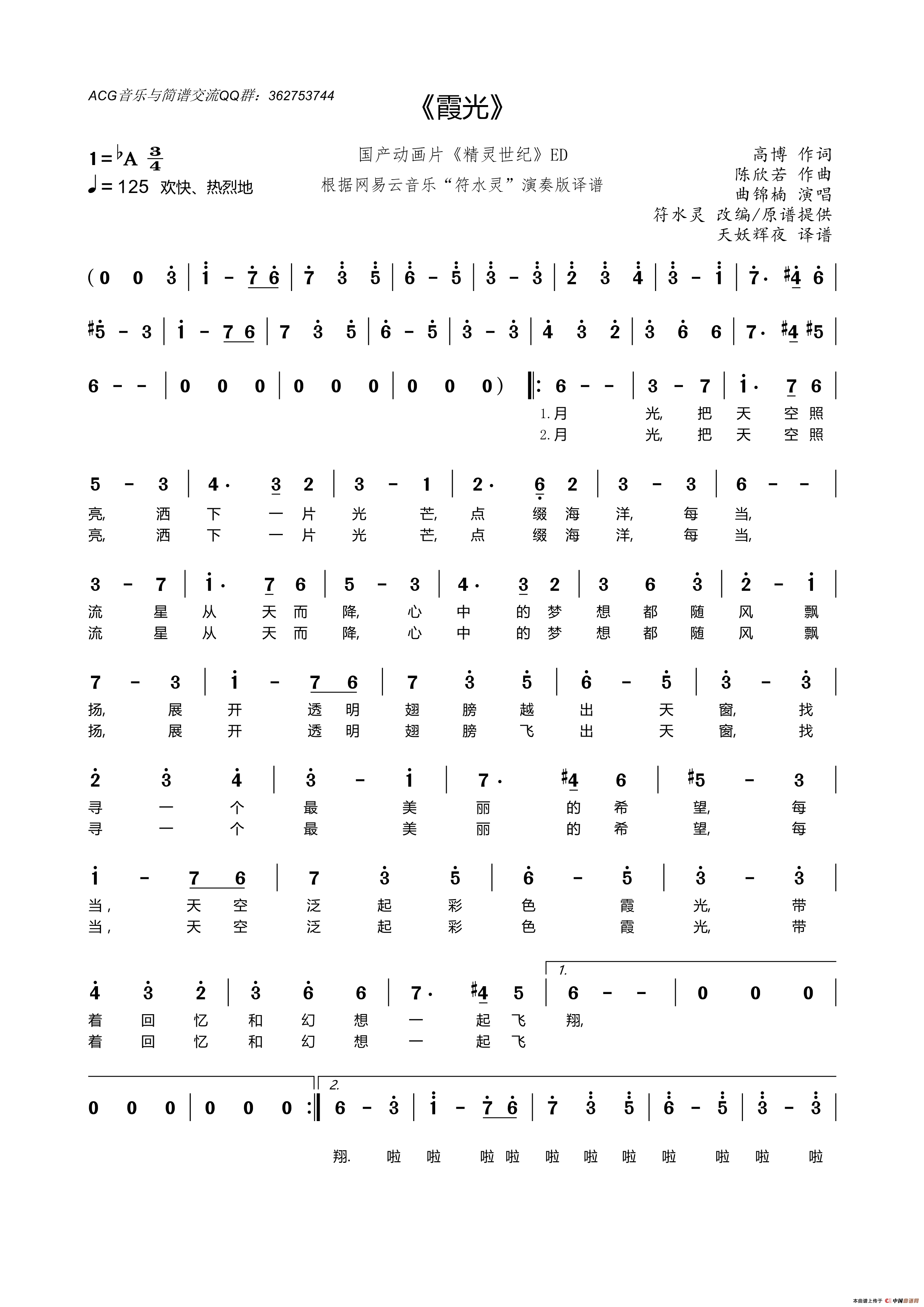 《霞光》是3D动画《精灵世纪》片尾曲,第一季与第二季的片尾演唱者分别是曲锦楠、白冰。