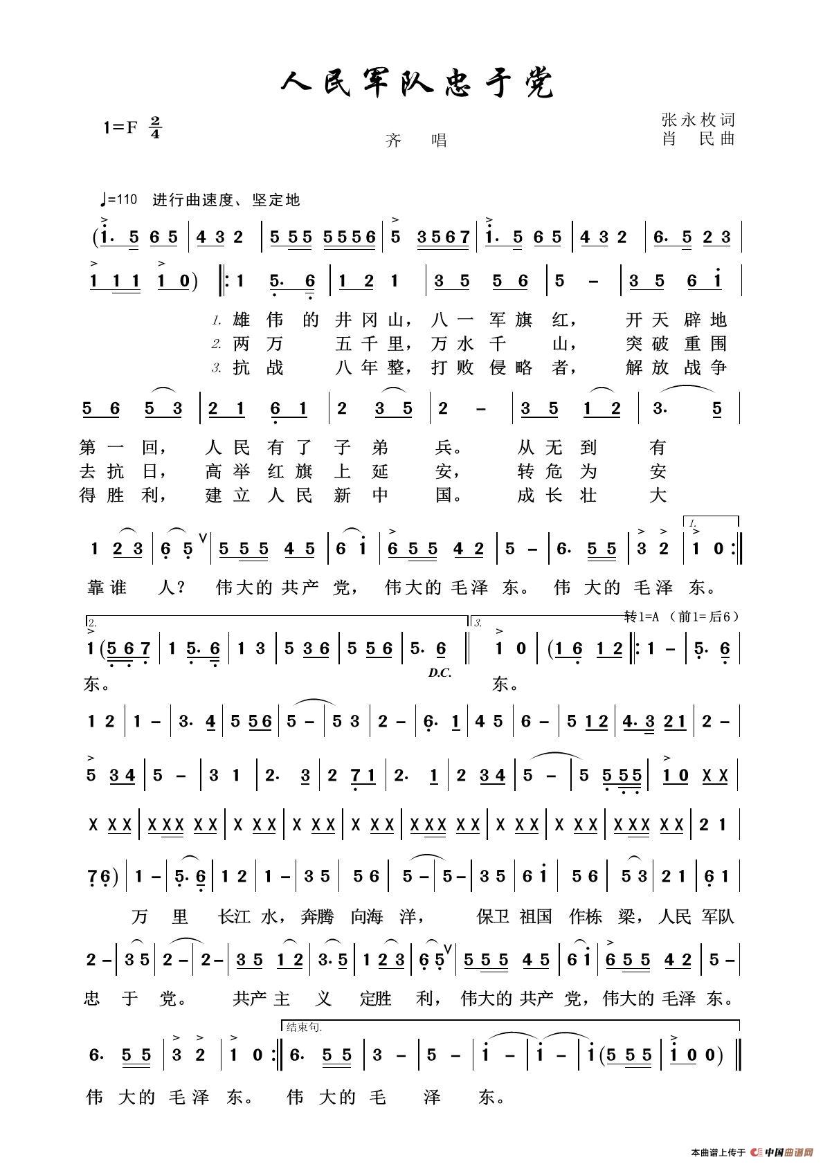 《军旅歌曲100首:人民军队忠于党》文本歌词