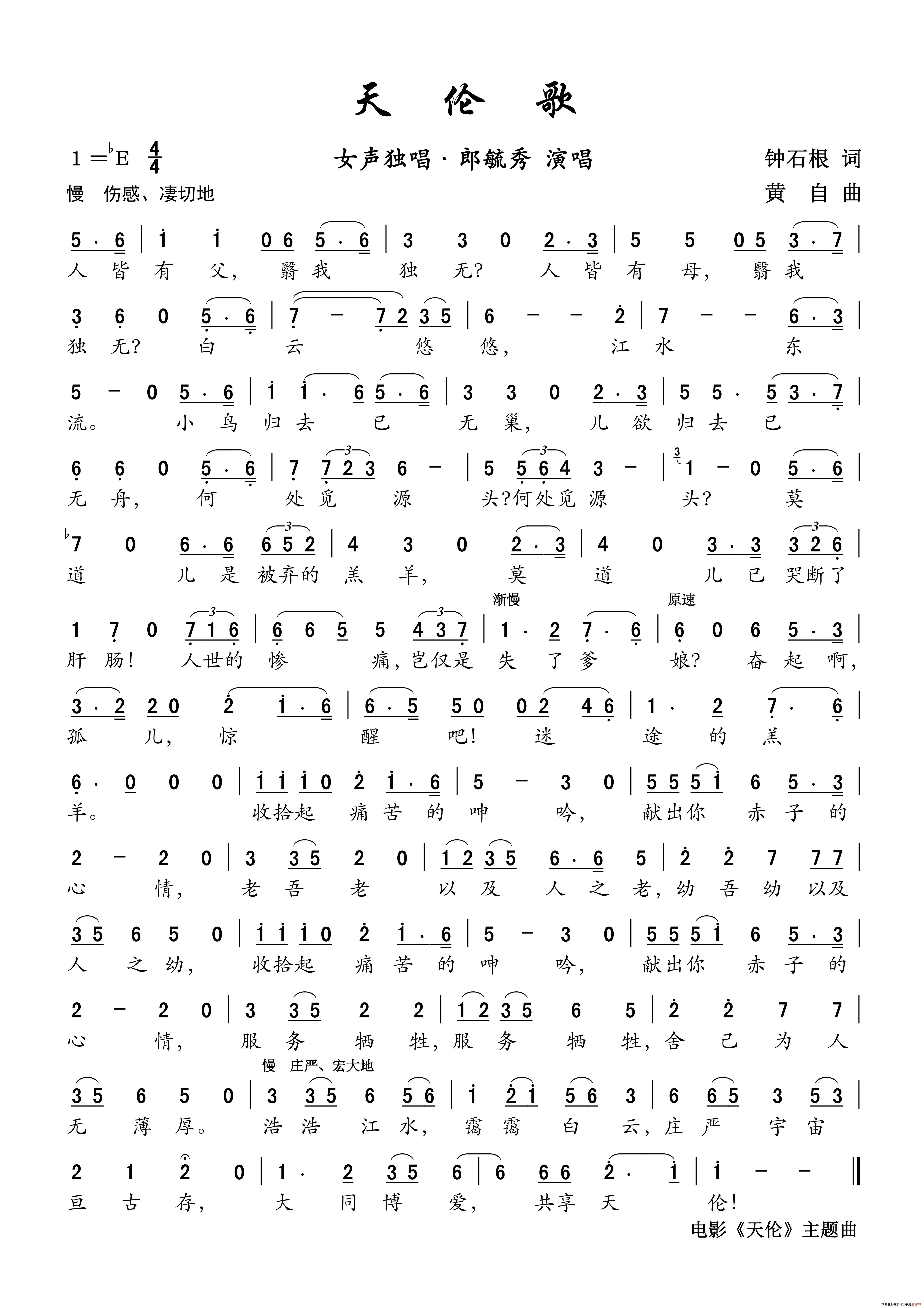 天伦歌(电影《天伦》主题歌)文字介绍文本——