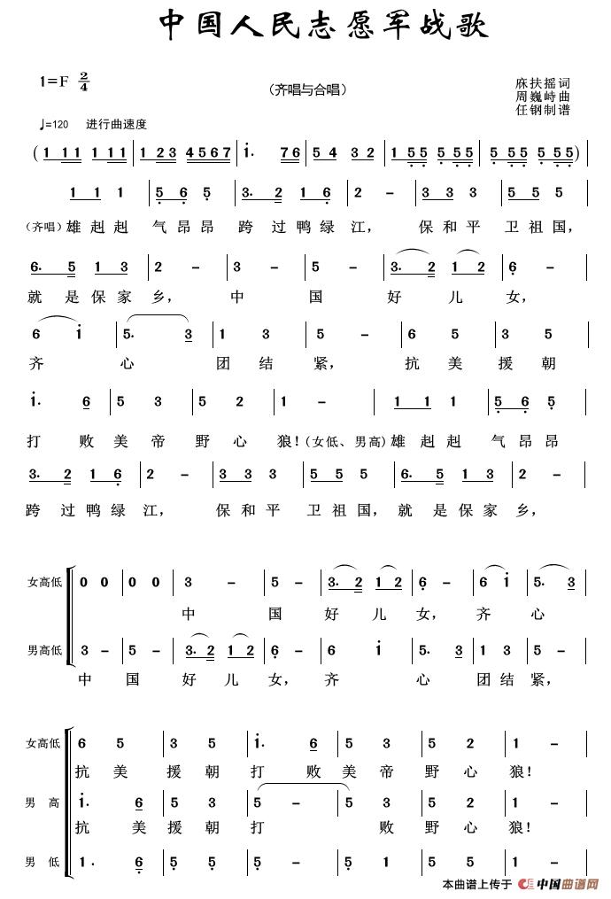 军旅歌曲100首:中国人民志愿军战歌(混声合唱)