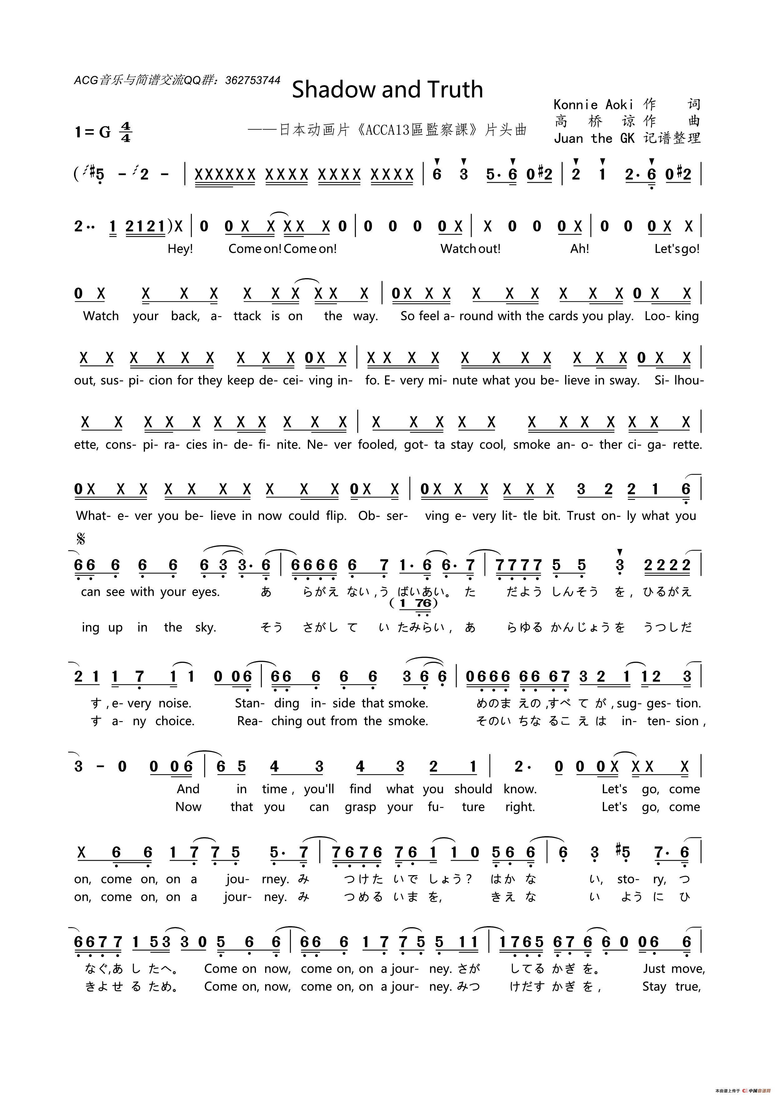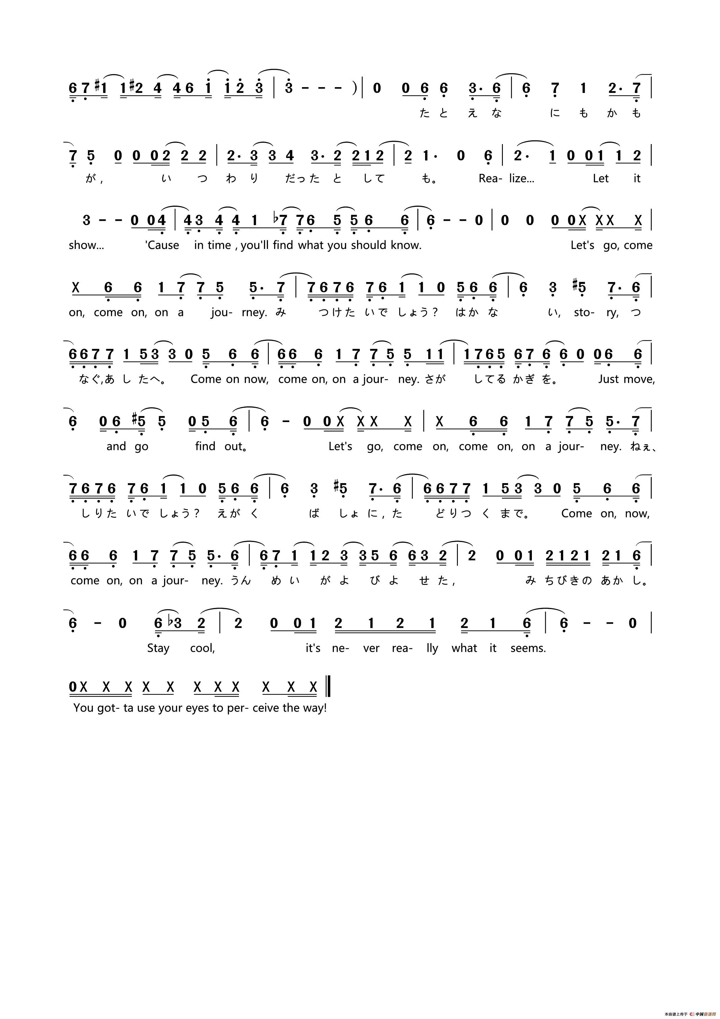 作词:Konnie Aoki 作曲:高桥谅 演唱(奏):ONE III NOTES 来源:个人制谱 上传:门酱胡安