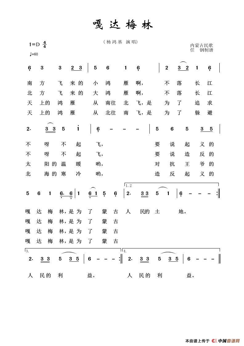 关于《草原歌曲100首:嘎达梅林》曲谱的评论