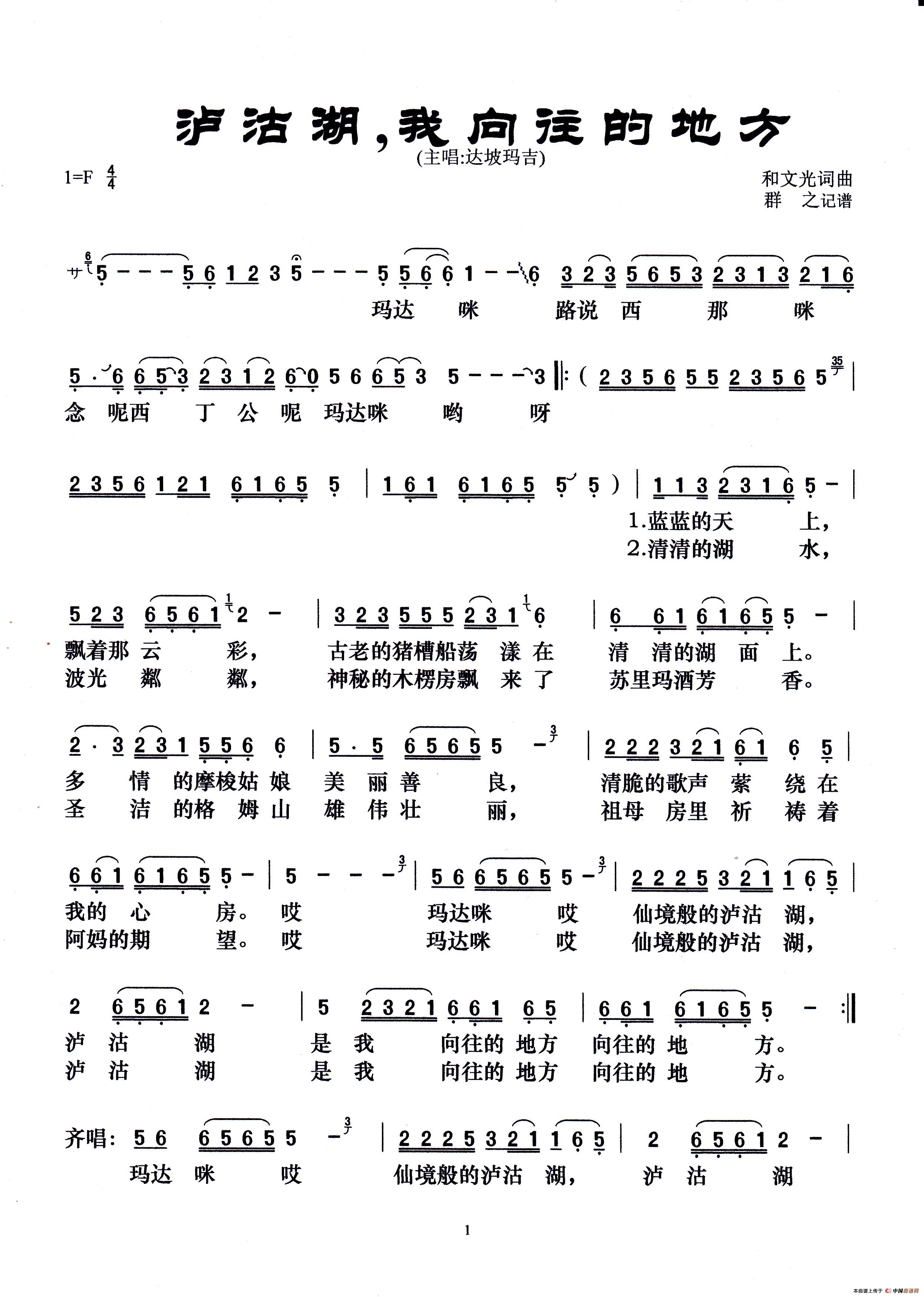 关于《泸沽湖,我向往的地方》曲谱的评论