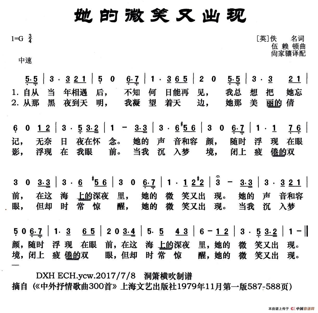关于《[英]她的微笑又出现》曲谱的评论