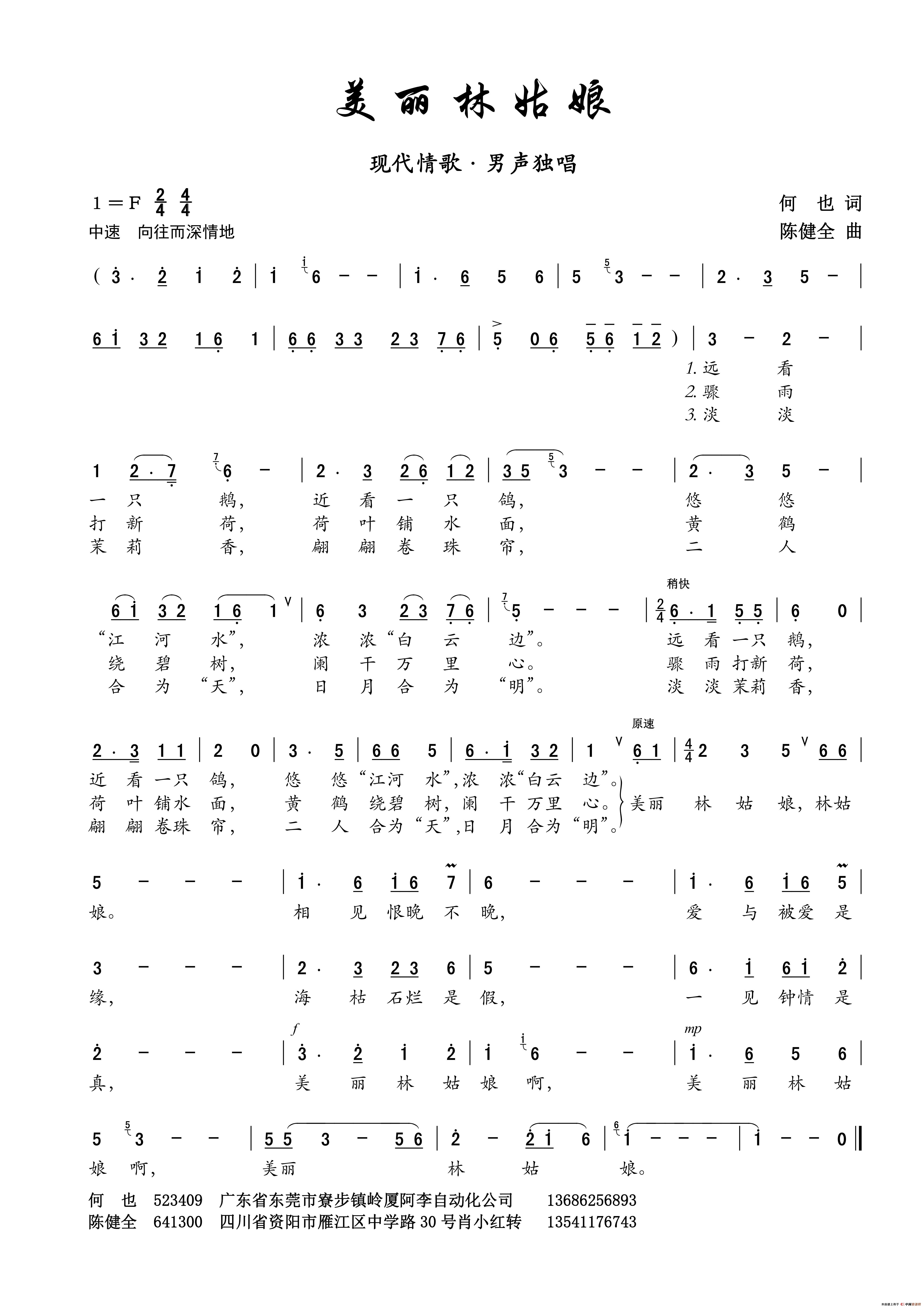 提示:在曲谱图片上单击右键,选择"图片另存为..."即可将曲谱保存到您的电脑中,打印时候可将图片插入到WORD中,调整合适大小打印即可。