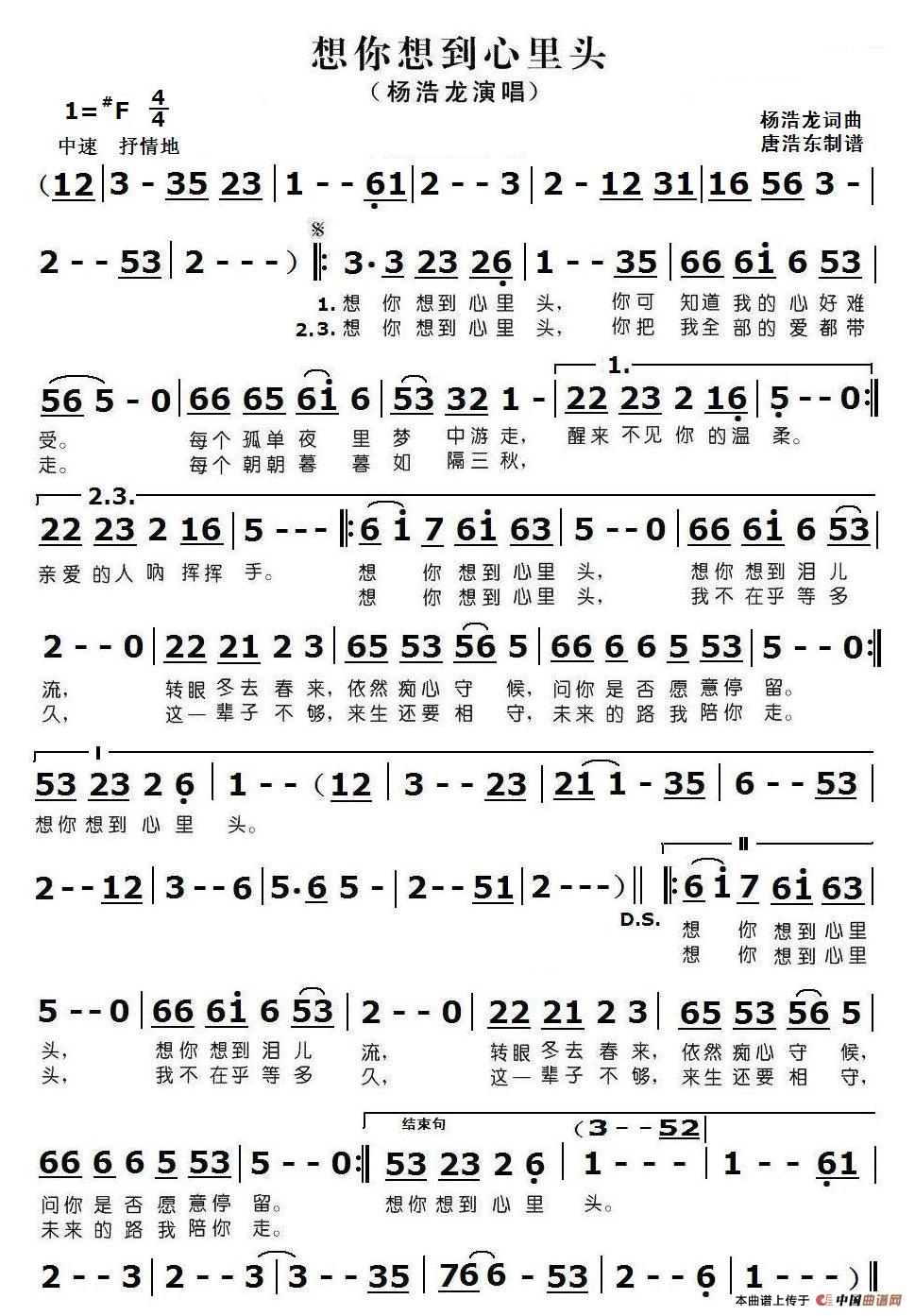 关于《想你想到心里头》曲谱的评论
