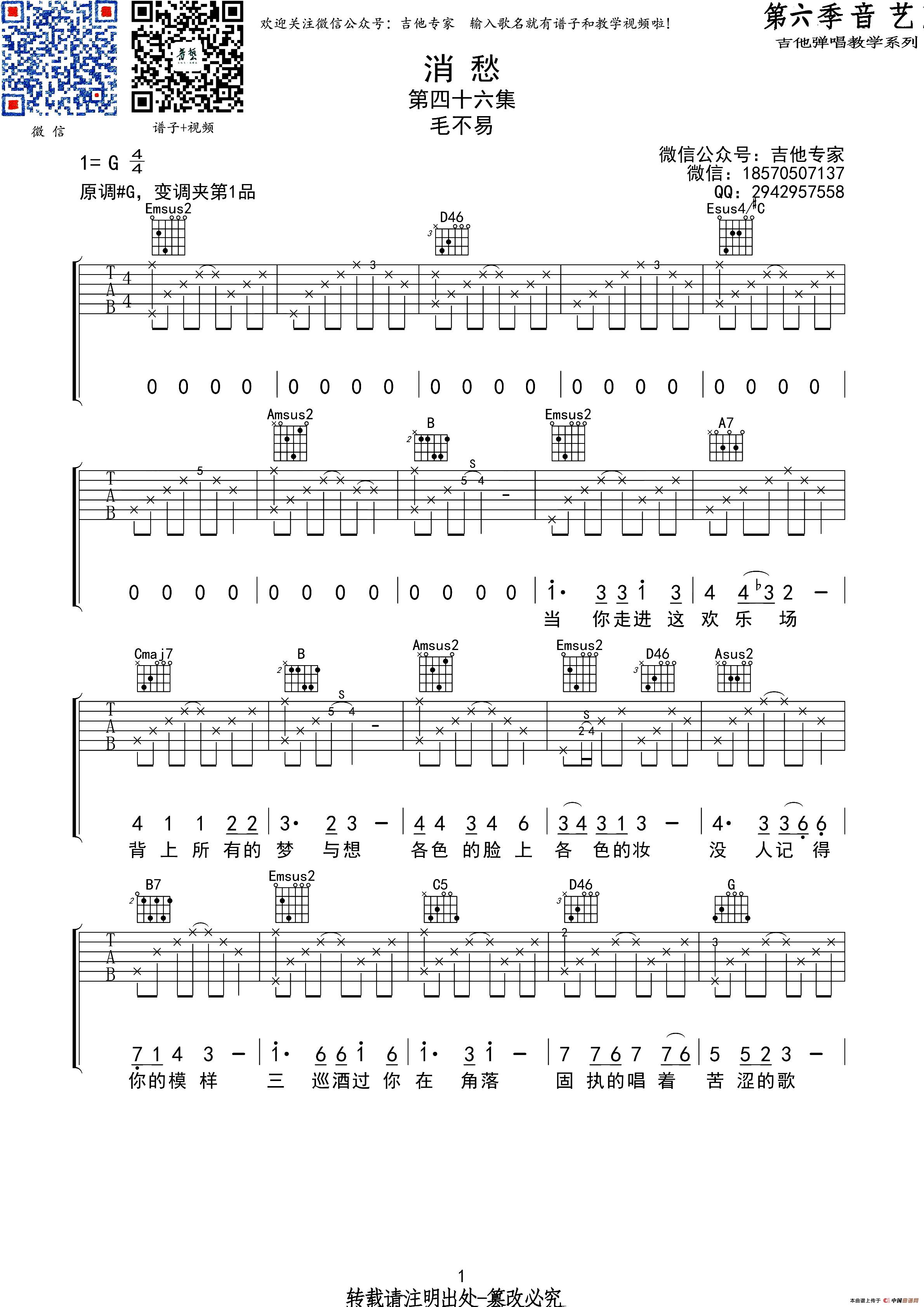 微信公众号:吉他专家 输入歌名就有谱子啦, QQ:2942957558 微信:18570507137